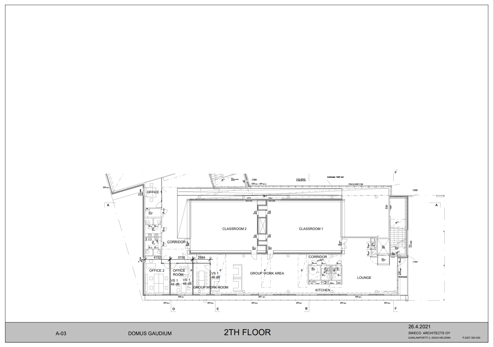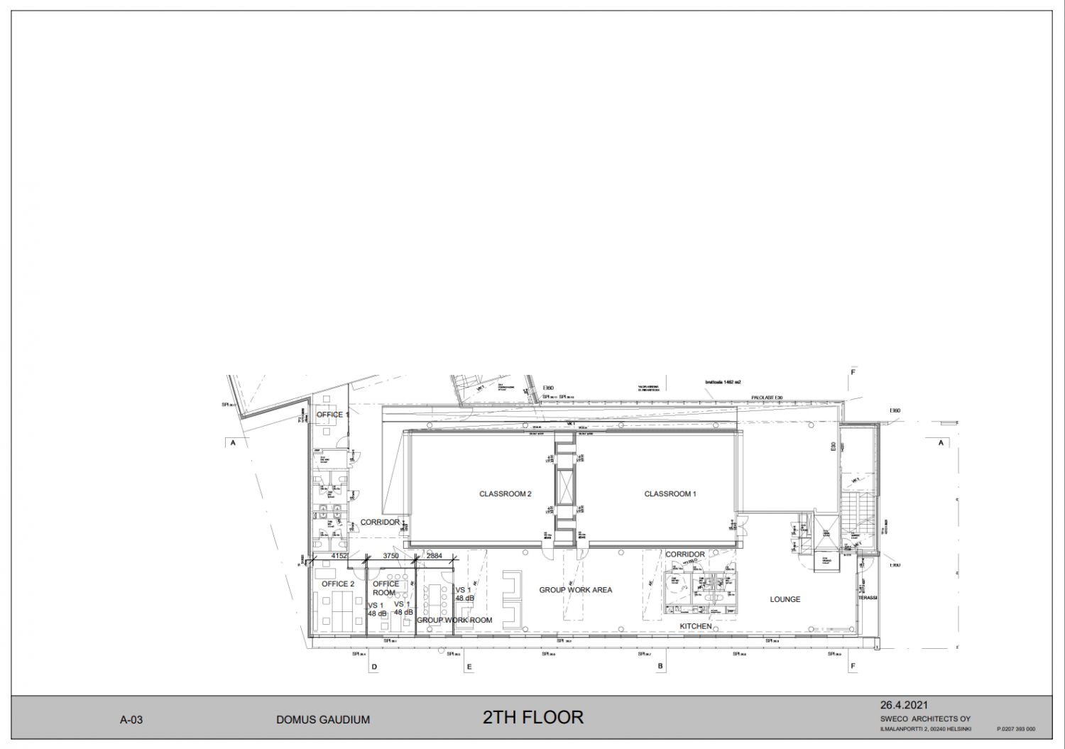 Tarjolla monikäyttöinen ja moderni koulutus- tai toimistotila Domus Gaudiumin toisessa kerroksessa. Tila soveltuu erinomaisesti koulutuskäyttöön, mutta muuntautuu tarvittaessa myös toimistoksi.