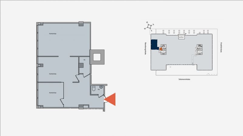Autotalon B-tornin pieni ja näppärä 80 m² toimisto. Tilassa avotilaa, yksi huone, omat wc-tilat ja pieni keittiö.
