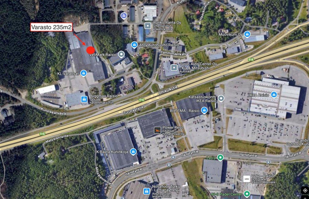 Varastotila Raisiosta, läheltä Kehätietä.