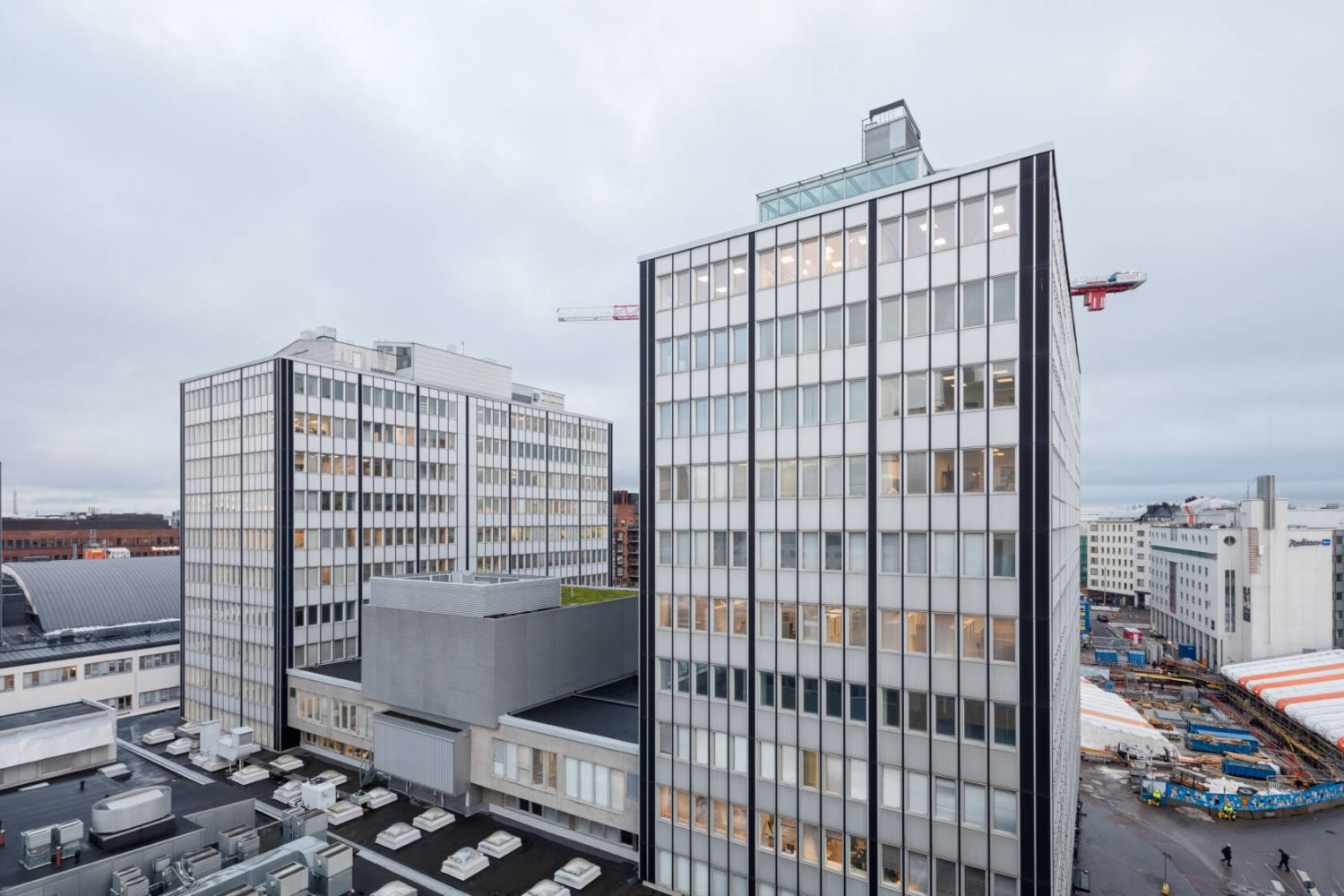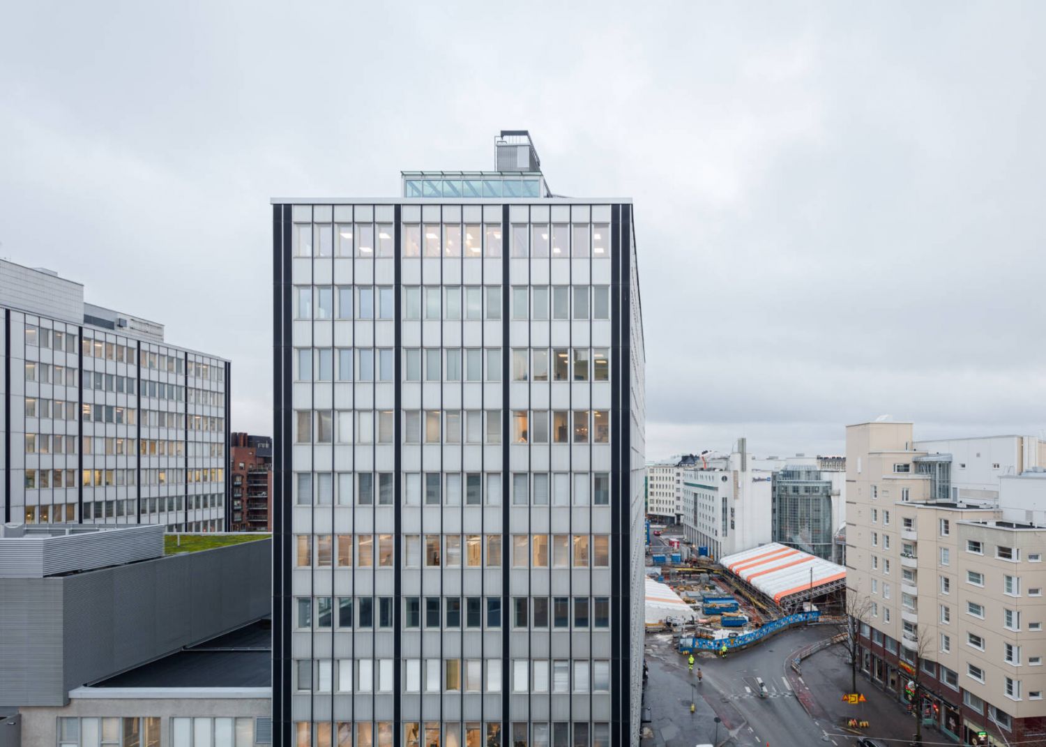 Autotalokorttelin Runskivuori-toimistotalo sijaitsee näyttävällä paikalla Kampissa.