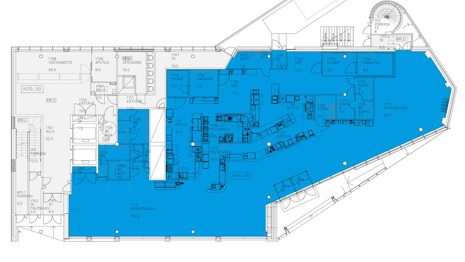 Vuokrataan 1. kerroksen 486 m² ravintolatila Jätkäsaaressa, joka soveltuu niin ravintolaksi kuin liiketilaksikin.