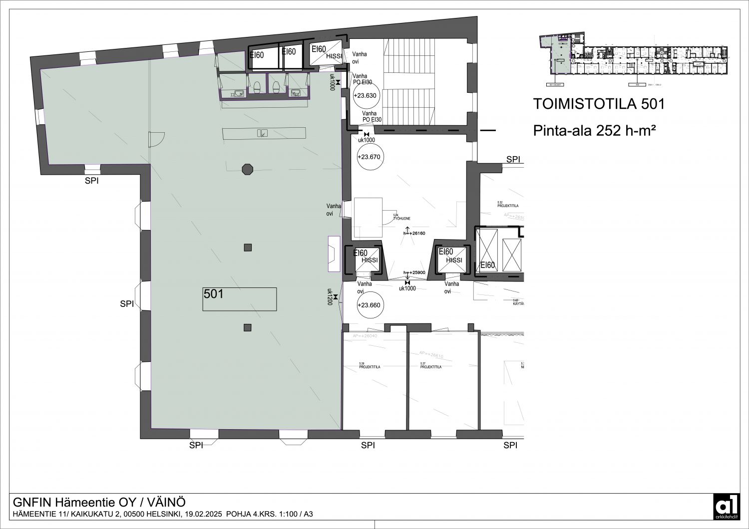 252 m² saneerattu toimistotila joka sijaitsee kiinteistön 5. kerroksessa.