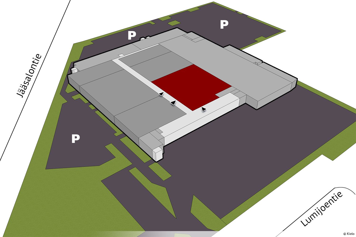 Kohde on rakennettu aikanaan Nokialle, ja vuosien varrella tiloissa on toiminut mm. HalpaHalli.