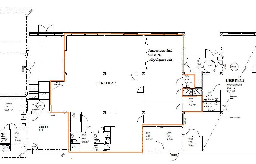 Huoneisto on pääsisäänkäynnistä vasemmalla. Siihen on rakennettu ns 2 kpl luokkahuonetyyppistä tilaa.