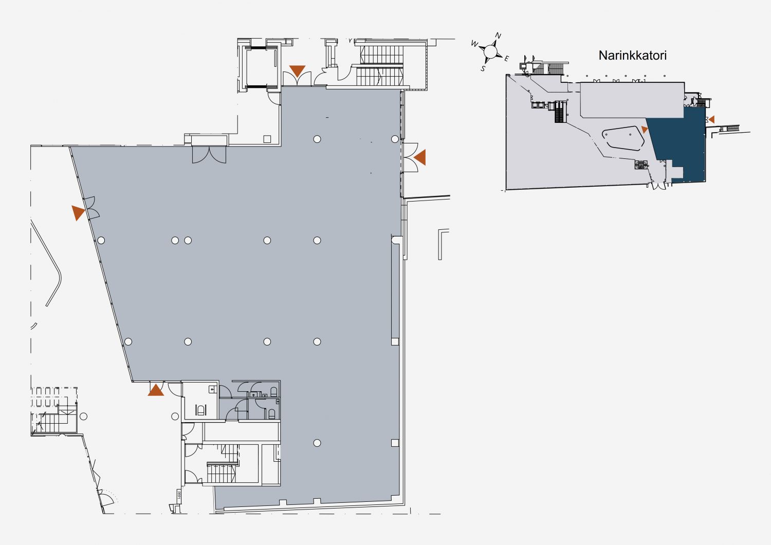 Tila on jaettavissa kahdelle, tilakoot noin 152 m2 ja 266 m2.