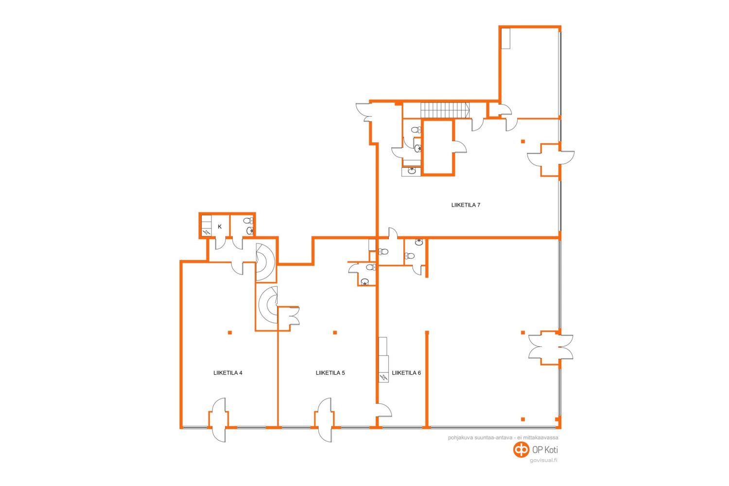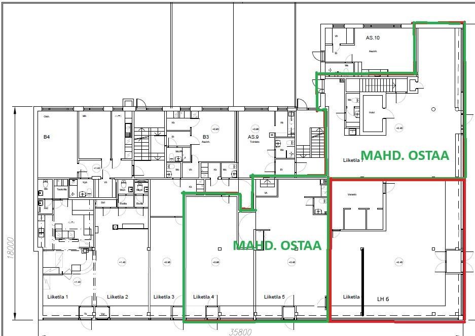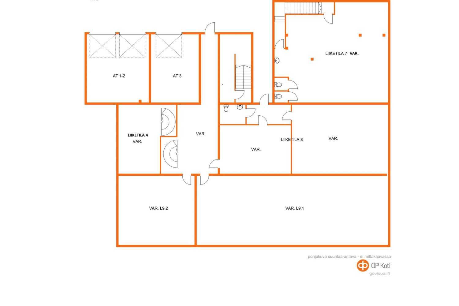 Liikehuoneistot L6 (129 m²), L8 (72 m², kellarikerros), L9 (151 m², kellarikerros)