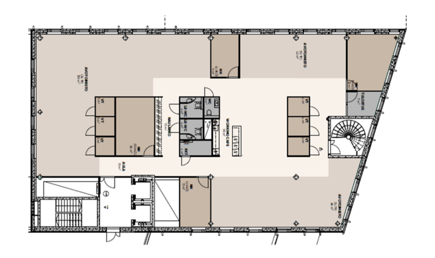 Tilaa on yhteensä 511,5 m², ja kiinteistön isot ikkunat tuovat mukavasti valoa tiloihin. Pohjaratkaisu on toteutettu avotilan sekä työ-, neuvottelu- ja vetäytymishuoneiksi soveltuvien tilojen yhdistelmänä. Lisäksi tilan keskeltä löytyy myös viihtyisä workinglounge / taukotila.