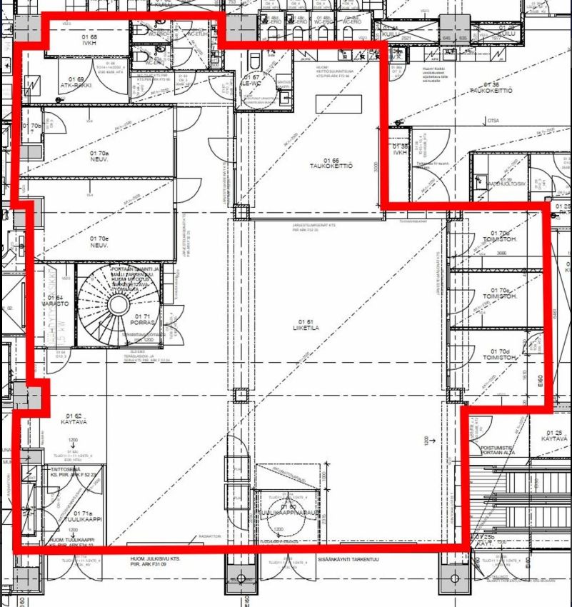 Vuokrattavana 1. kerroksen viihtyisää, modernia avotoimistotilaa upealla sijainnilla. Toimistossa on avotila, 3 työhuonetta, pari neuvottelutilaa ja taukotila.