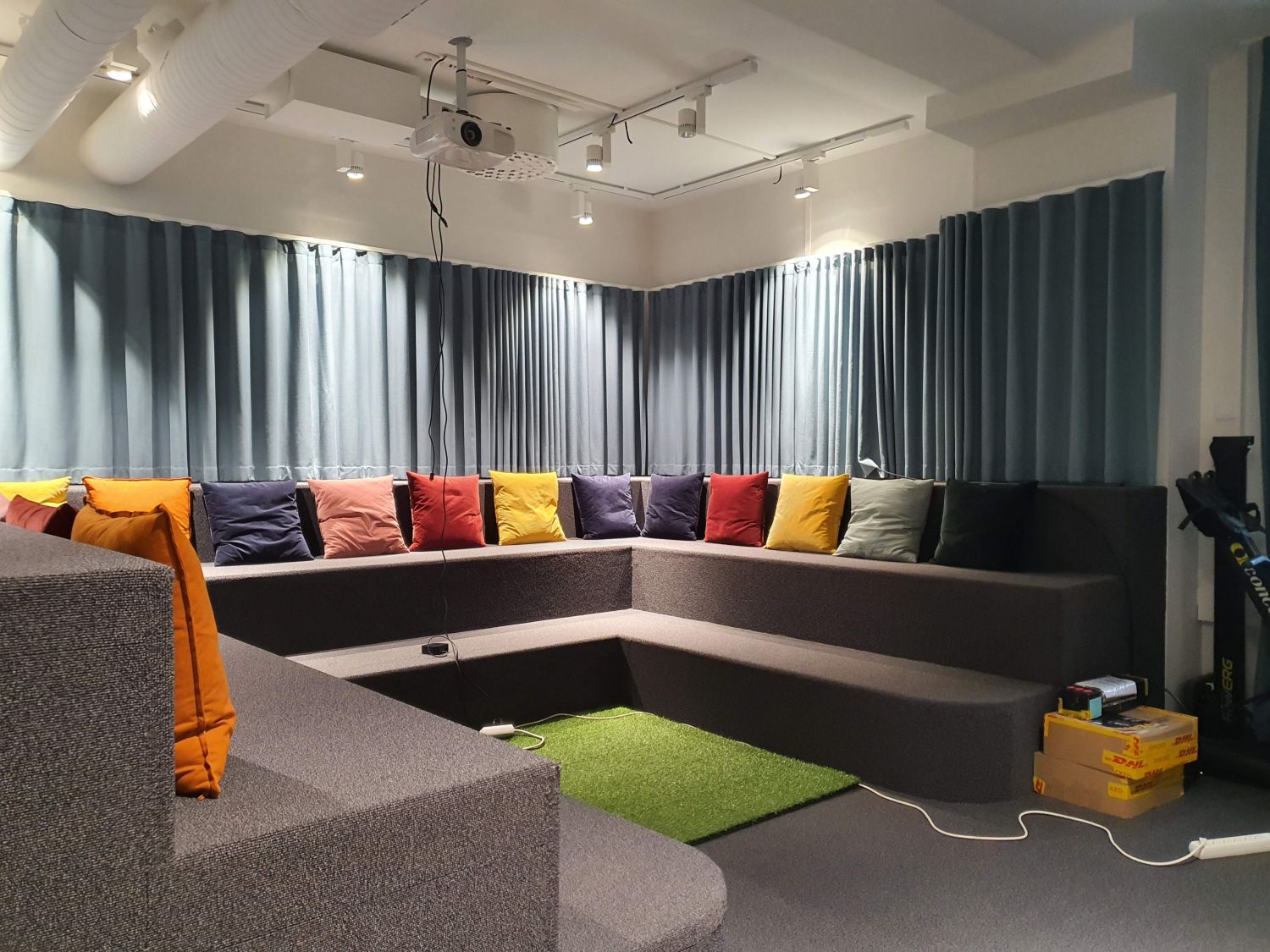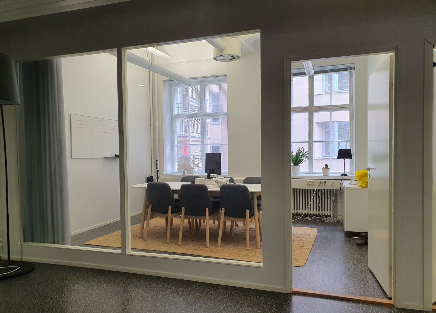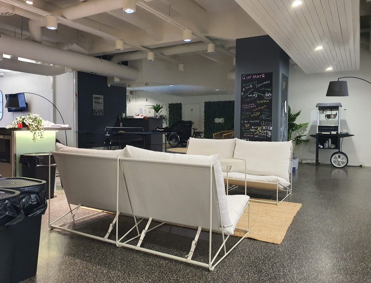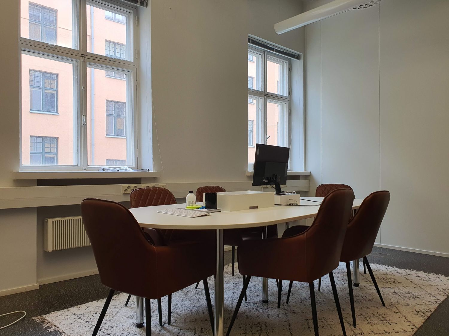 Kokonaisuudesta löytyy avotilaa, erikokoisia neuvottelutiloja, työhuoneita, longe näyttävällä baarikeittiöllä, amfiteatteri, 2 WC-tilaa ja inva-WC.