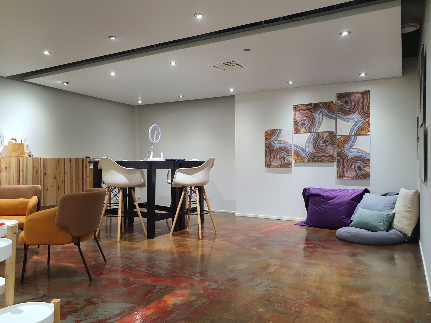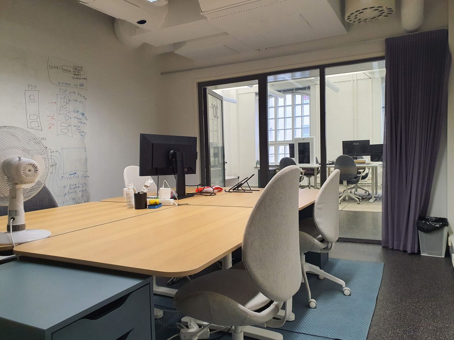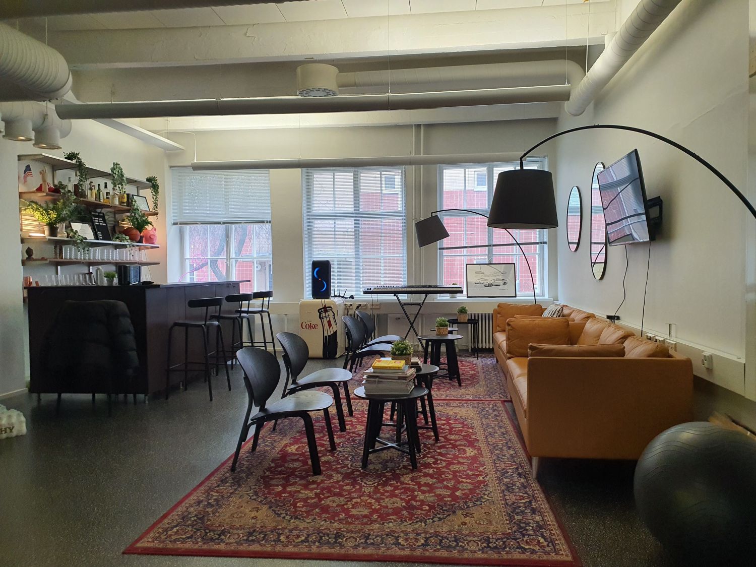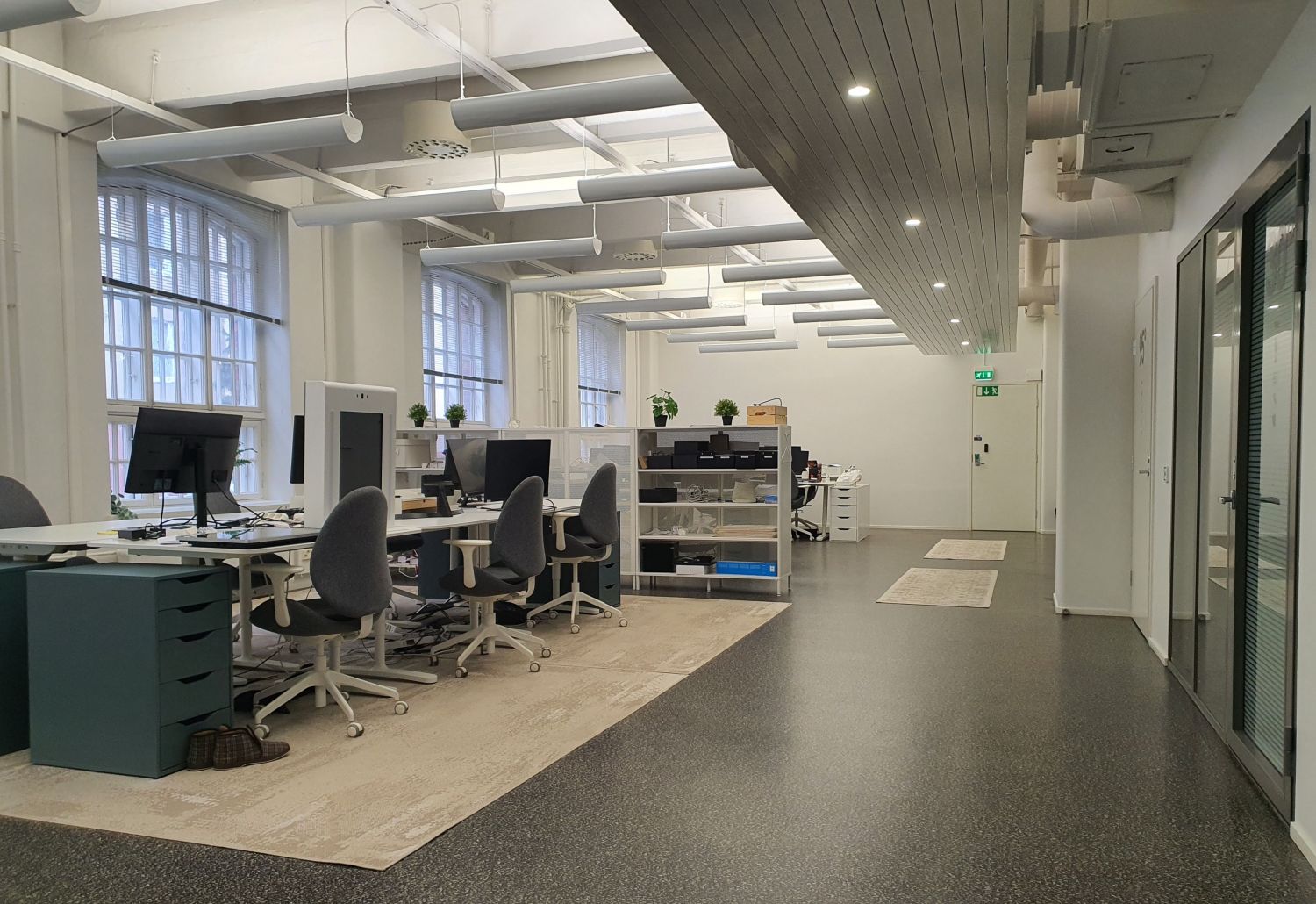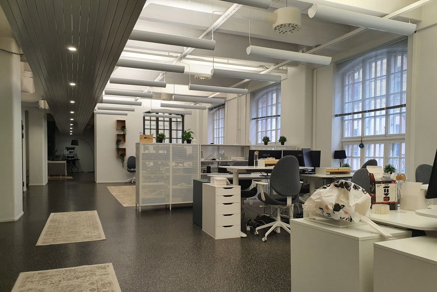 Tähän upeaan industrial-tilaan tulvii valoa lukuisista suurista ruutuikkunoista. Hulppea huonekorkeus ja toimiva pohjaratkaisu, mikä mahdollistaa monimuotoisen työskentelyn inspiroivissa puitteissa.