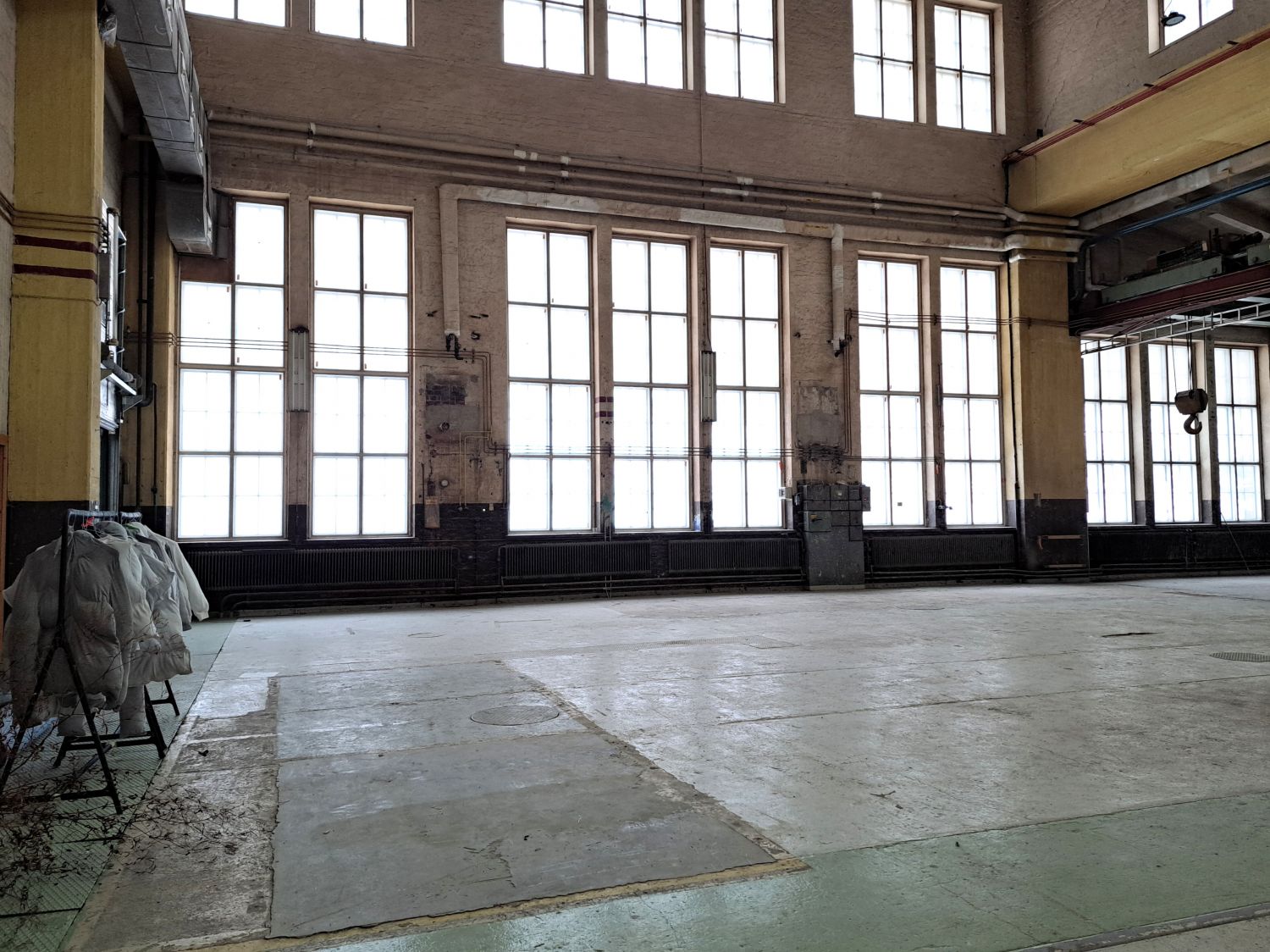 Korkea hallitila vuokralle entisessä veturitallissa.