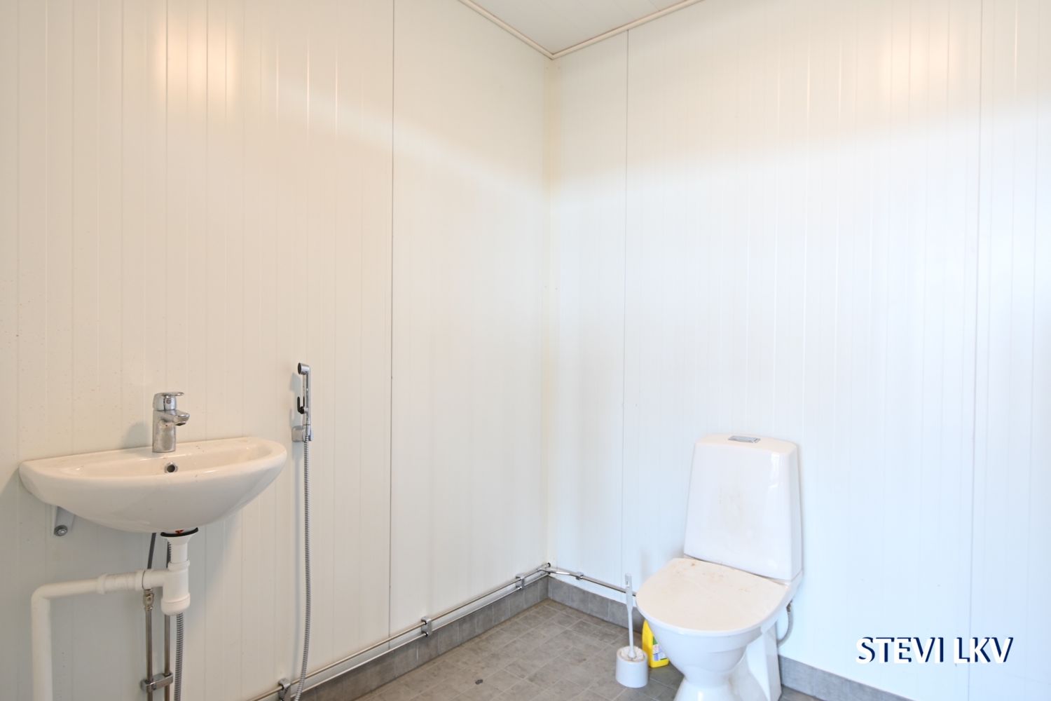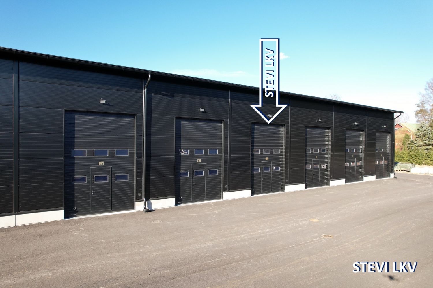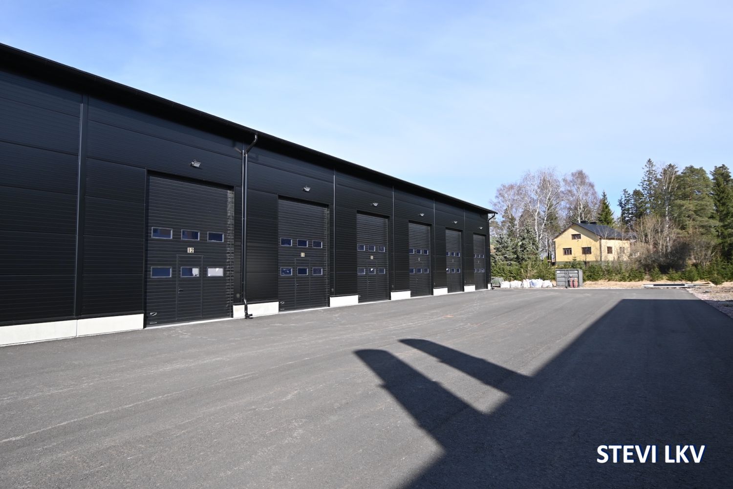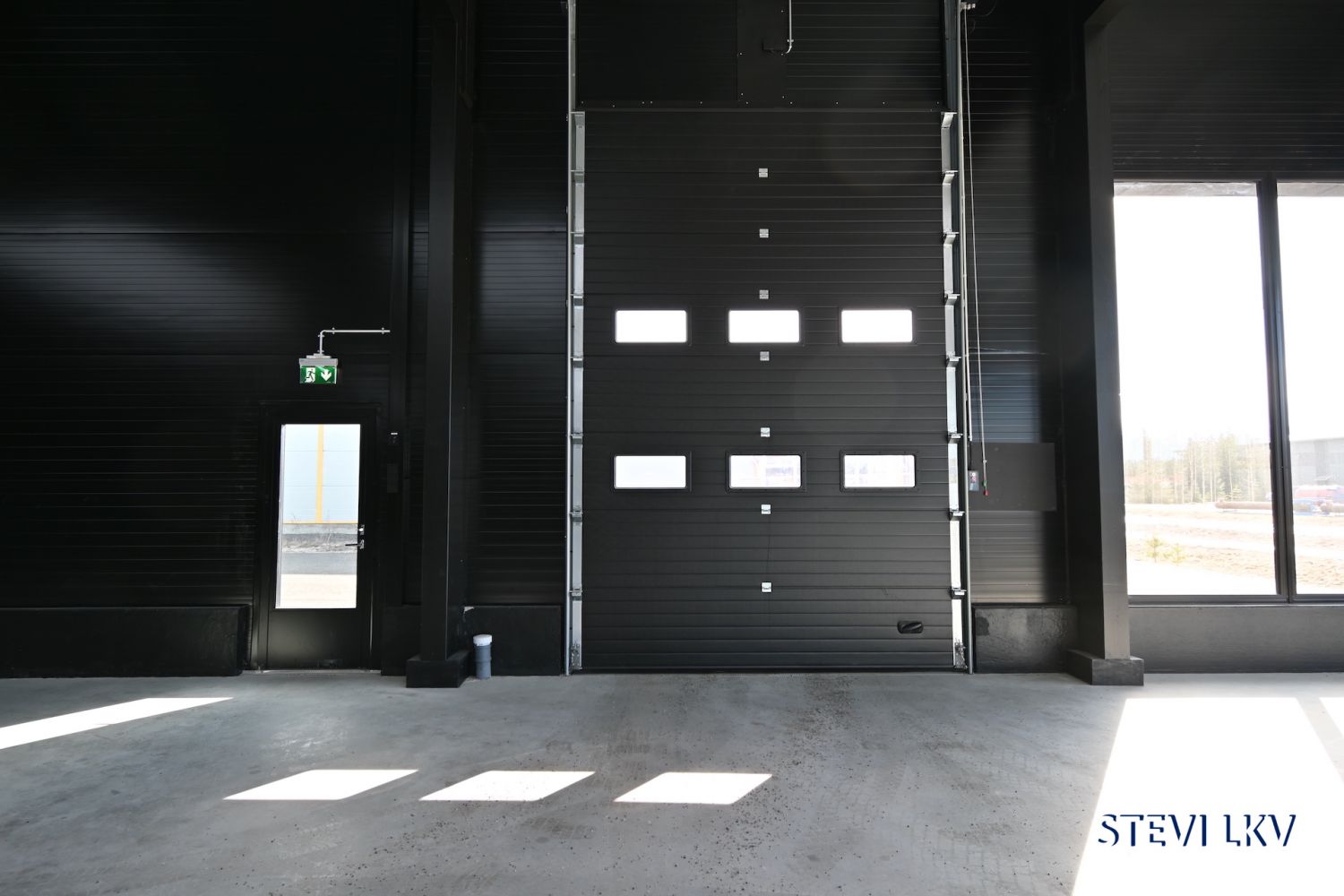 Tilaan on käyntiovet ja iso nosto-ovi (4,5 metriä korkea ja 3 metriä leveä).