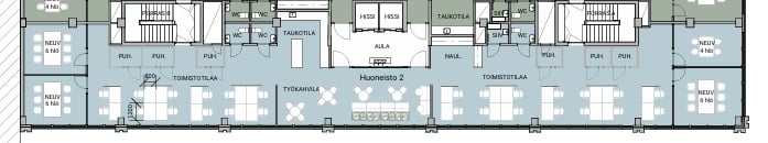 Tämä viidennen kerroksen uniikki toimitila ihastuttaa jokaisen työntekijän. Tila on moderni ja sen suurten lattiasta kattoon yltävien ikkunoiden ansiosta myös valoisa. Tila koostuu monipuolisesti niin avotyötilasta kuin myös työ- ja neuvotteluhuoneista. Lisäksi käytössäsi on viihtyisä taukotila keittiöllä sekä siistit wc-tilat. Tilaa voidaan myös muokata vuokralaisen tarpeen mukaan, joten tästä toimistosta saadaan täydellinen juuri sinun tarpeisiisi.