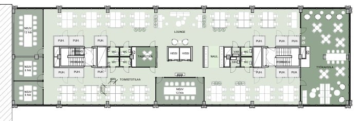 Tämä ylimmän kerroksen uniikki toimitila ihastuttaa jokaisen työntekijän. Tila on moderni ja sen suurten lattiasta kattoon yltävien ikkunoiden ansiosta myös valoisa. Tila koostuu monipuolisesti niin avotyötilasta kuin myös neuvotteluhuoneista. Lisäksi käytössäsi on viihtyisä taukotila sekä siistit wc-tilat. Tilaa voidaan myös muokata vuokralaisen tarpeen mukaan, joten tästä toimistosta saadaan täydellinen juuri sinun tarpeisiisi.