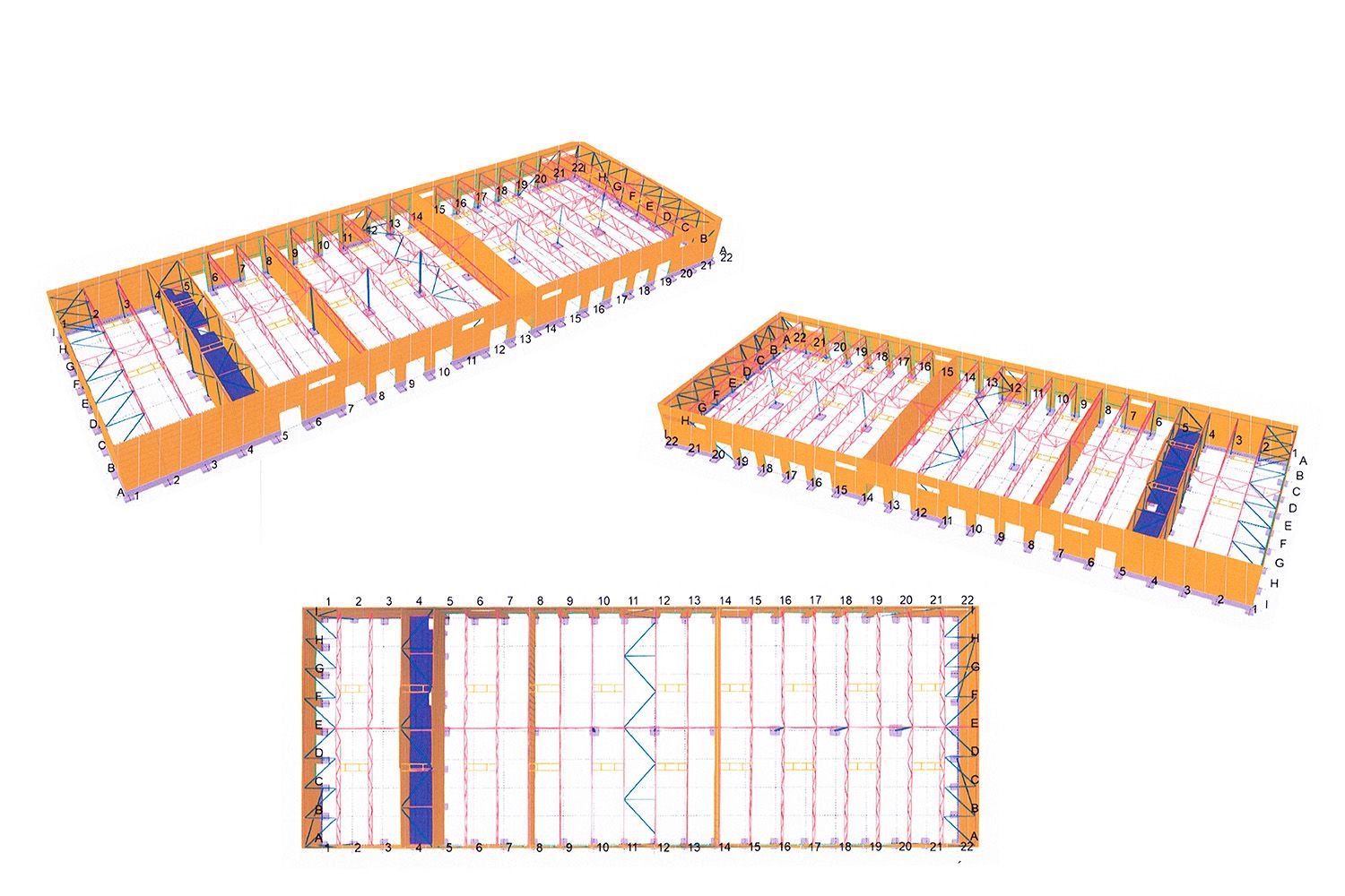 Rakennuksen hallitilojen kokomahdollisuuksia on paljon. Tilat voivat olla syvyydeltään 45 metriä ja minimi leveydeltään 6 metriä (katso havainnekuvasta tarkemmin pilarien sekä kattotuolien sijainti). Tiloihin mahdollista saada monipuolista varustelua käyntiovellisten nosto-ovien, lattiakaivojen ja vesipisteiden lisäksi. Jokaiselle tilalle tilakohtaiset vesi- ja sähkömittaukset. Rakennuksen sisäkorkeus tulee olemaan 7 metriä.