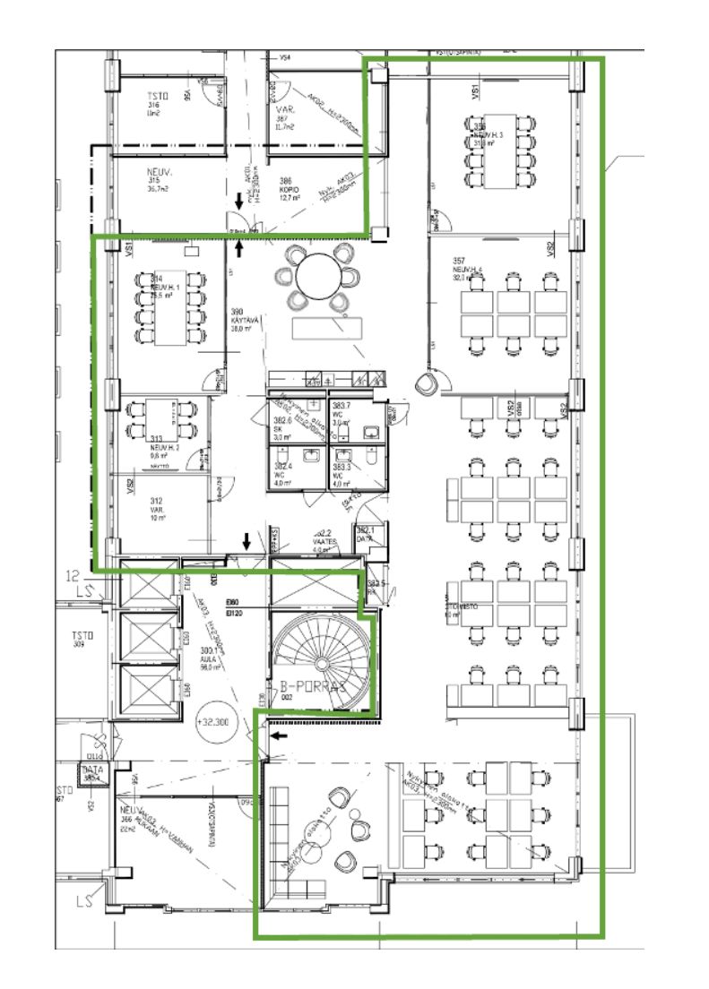 Vuokrataan 3. kerroksen moderni ja valoisa toimistotila, joka tarjoaa ihanteelliset puitteet tehokkaaseen työskentelyyn. Tilasta löytyy avara avotila, useita tiimi- ja neuvotteluhuoneita sekä pienempiä työhuoneita, jotka mahdollistavat joustavan työskentelyn eri tarpeisiin. Tyylikäs avokeittiö toimii loistavana kohtaamispaikkana, ja siistit wc-tilat tuovat lisämukavuutta arkeen. Tila on erinomaisessa kunnossa ja täysin muuttovalmis.