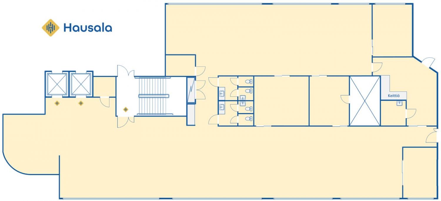 Vuokrataan siisti kolmannen kerroksen ilmastoitu 414 m² toimistotila Sörnäisistä.