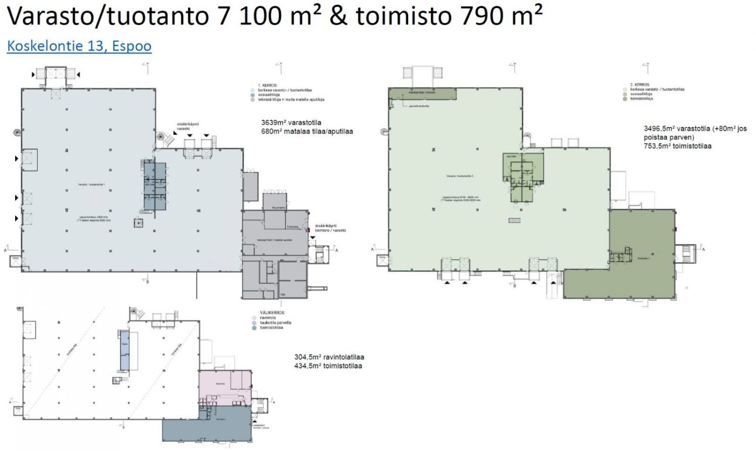 Vuokrataan Espoon Koskelosta heti vapaa 9 039 m² varasto-/tuotantorakennus kokonaan tai lohkottuna pienemmiksi osiksi.