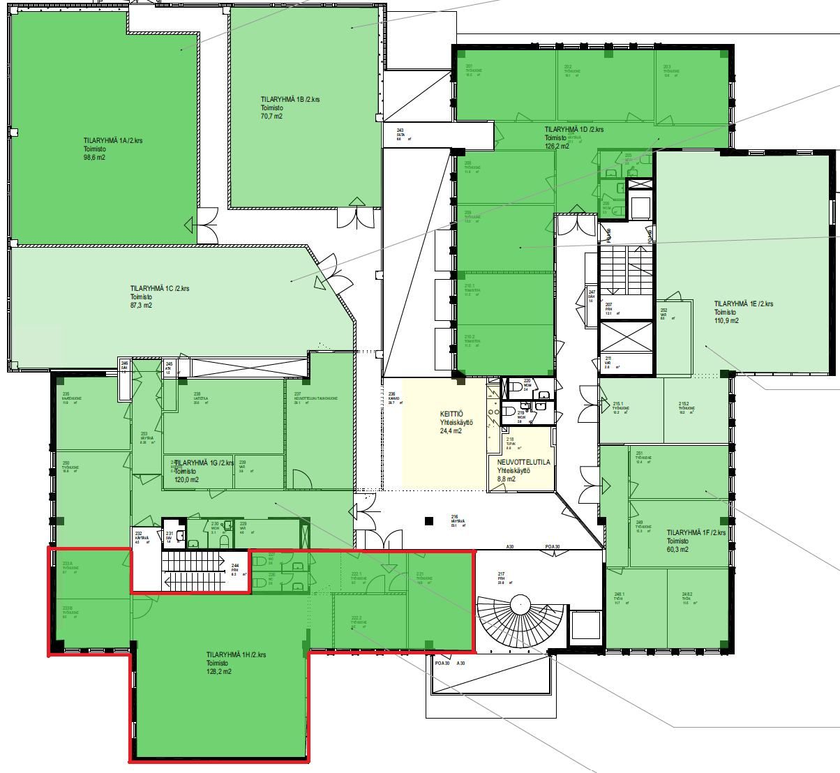 Vuokrataan siisti 128m² toimistotila kiinteistön 2. kerroksesta. Tila koostuu 3 huoneesta ja yhdestä isommasta avotilasta. Remontoidaan täysin vuokralaisen tarpeiden mukaan. Käytössä juuri valmistunut uusi ja upea yhteiskeittiö. Yhteiset WC-tilat käytävällä. Voidaan yhdistää viereisen tilan kanssa jolloin kokonais pinta-ala on 250m2.