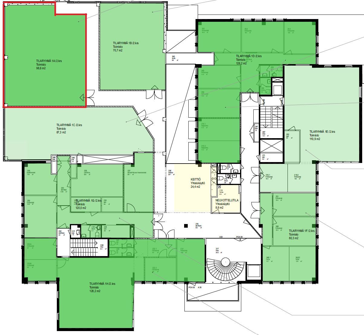 Vuokrataan siisti ja valoisa 92m² toimistotila kiinteistön 2. kerroksesta. Tila on tällä hetkellä täysin avointa, joten se remontoidaan täysin vuokralaisen tarpeiden mukaan. Käytössä juuri valmistunut uusi ja upea yhteiskeittiö. Yhteiset WC-tilat käytävällä. Talo tarjoaa vuokralaisten käyttöön ilmaiseksi 2 kpl neuvotteluhuoneita 1. kerroksesta. Näiden varaus järjestelmän kautta. Kiinteistöllä oma parkkihalli, josta mahdollisuus saada pysäköintioikeuksia. Talon ylimmässä kerroksessa edustavat terassi- ja saunatilat. Kellarista mahdollista vuokrata varastotilaa!