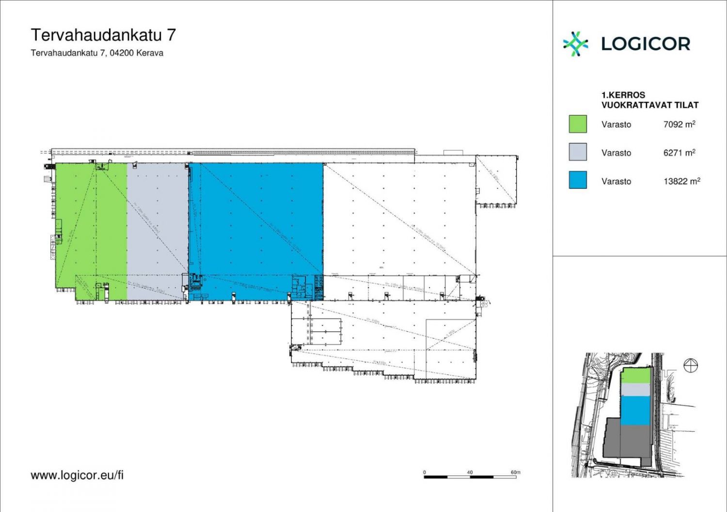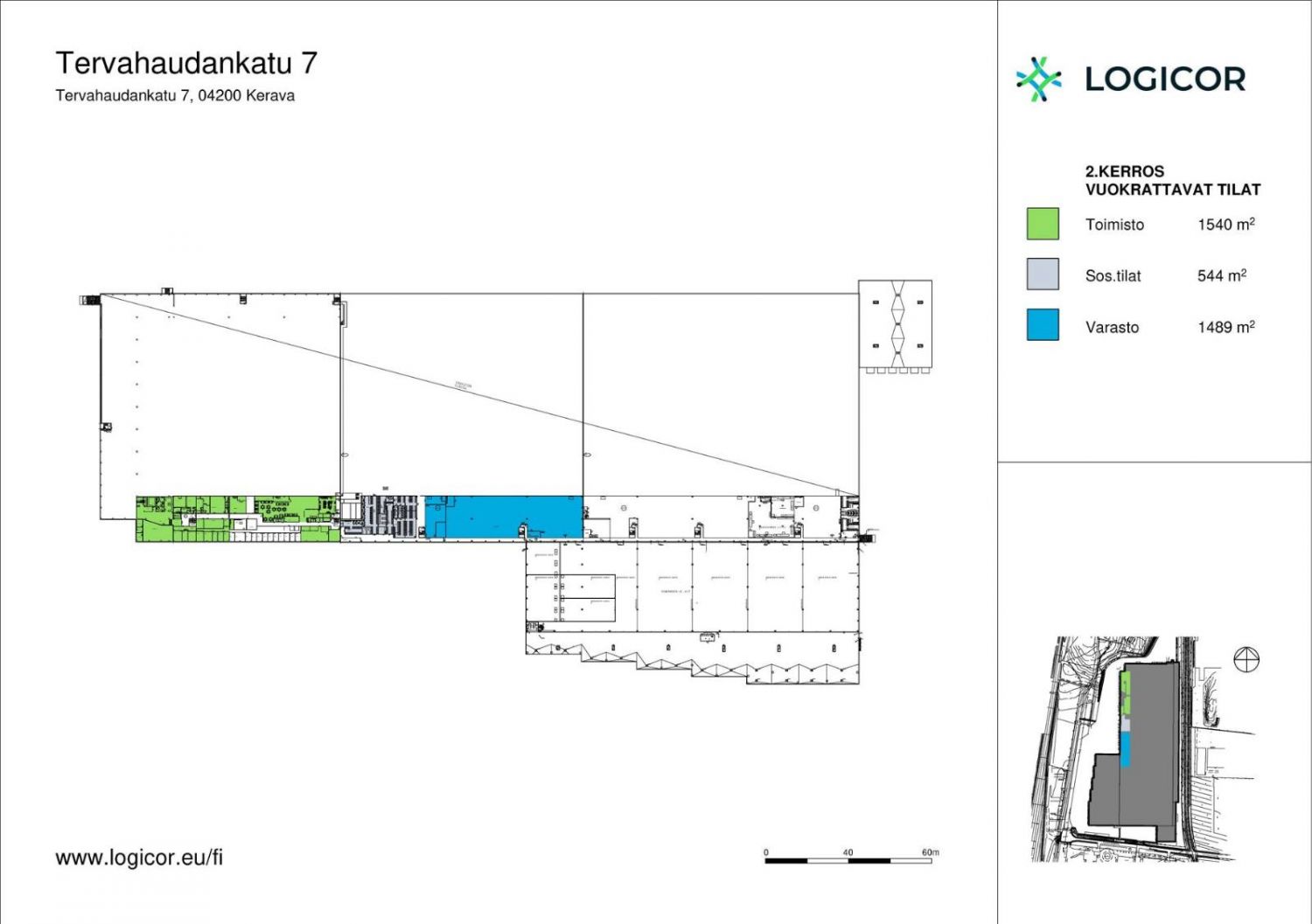 Kiinteistön sijainti Keravalla on logistisesti erinomainen junaradan ja Lahden moottoritien (E75) välittömässä läheisyydessä. Yhteys niin Helsingin keskustaan (31 km), lentoasemalle (20 km) kuin Vuosaaren satamaankin (23 km) on sujuva. Kiinteistölle on oma junaraideyhteys. Kohteeseen on helppo saapua myös julkisilla liikennevälineillä, sillä Keravan juna-asemalle on alle kilometri.