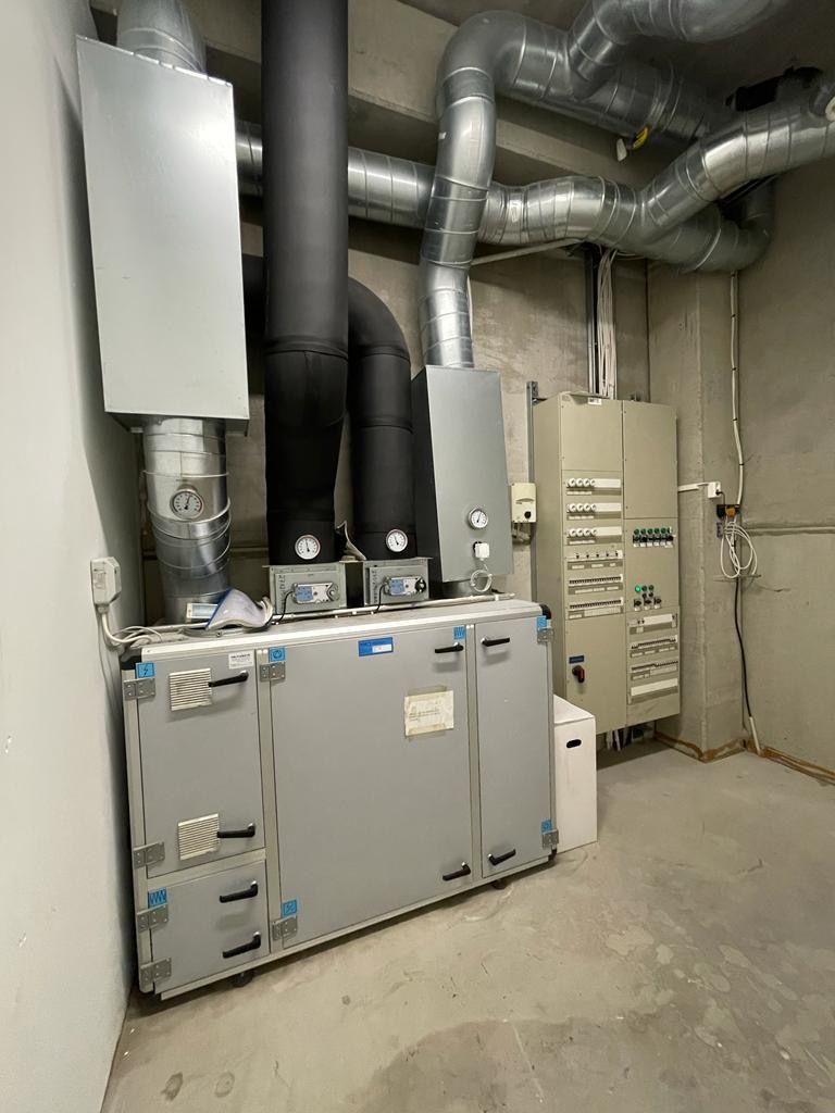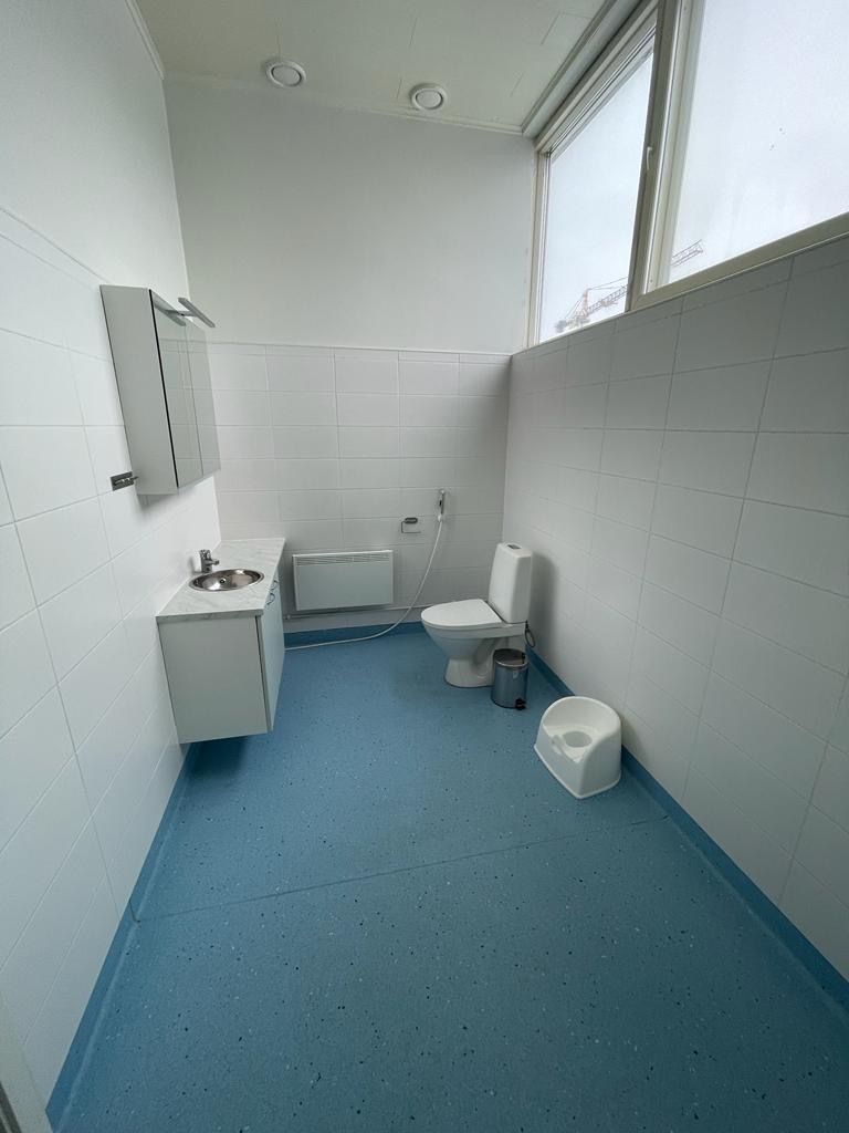 Yläkerrassa toimistotilaa sekä sosiaalitilat. Yläkerran tilassa ilmalämpöpumppu.