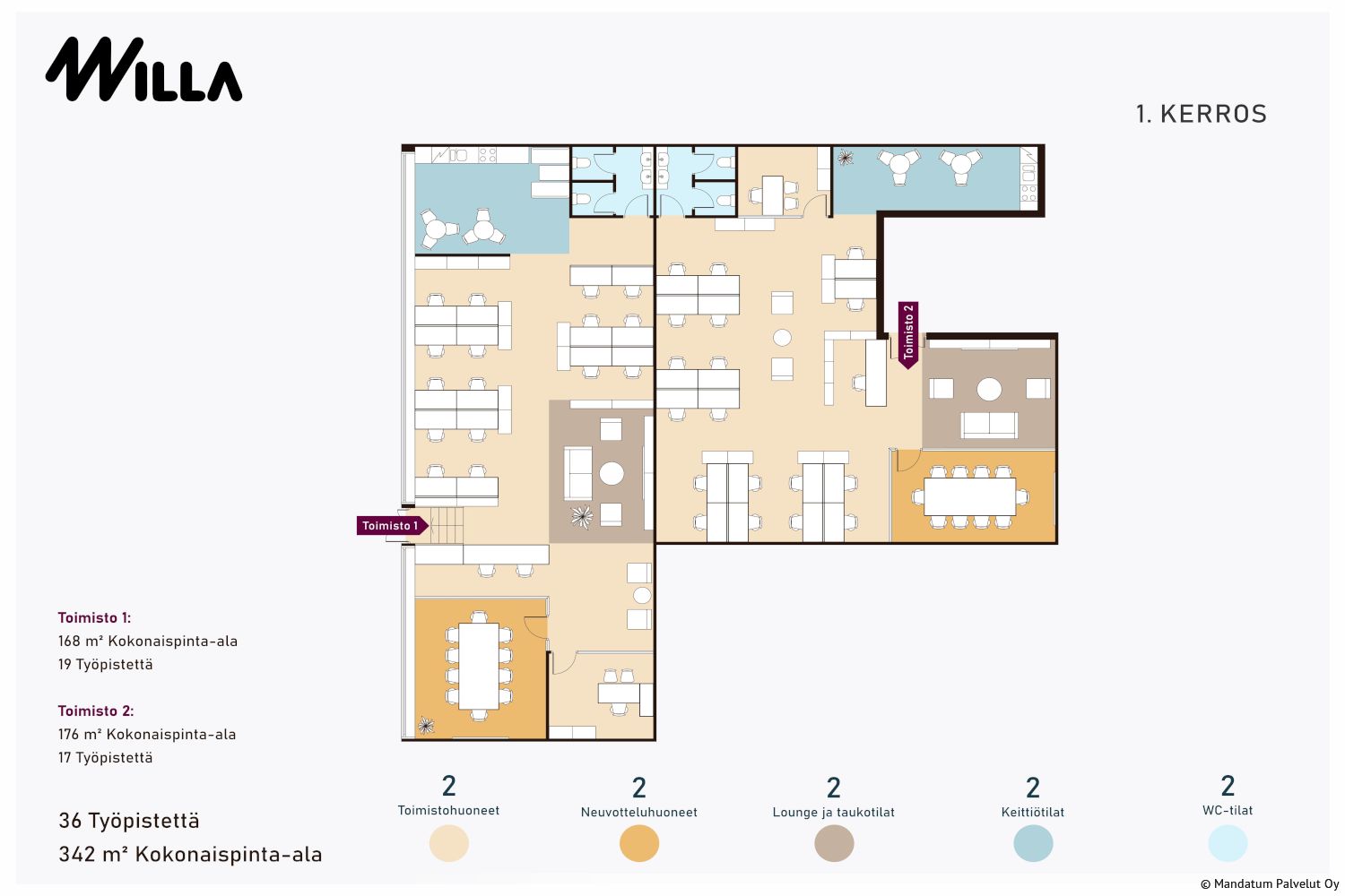 Kauppakeskus Willan Prismatasolla on modernia ja muuntojoustavaa toimistotilaa ennakkomarkkinoinnissa. Tilakokoja on tarjolla 100-340 m2. Tilaratkaisut toteutetaan vuokralaisen tarpeiden ja toiveiden mukaisesti. Käynti toimistoihin on joko kauppakeskuksen sisältä tai ulkokautta. Työntekijöiden käytössä monipuoliset kauppakeskuksen palvelut, mm. noin 20 ravintolaa/kahvilaa.