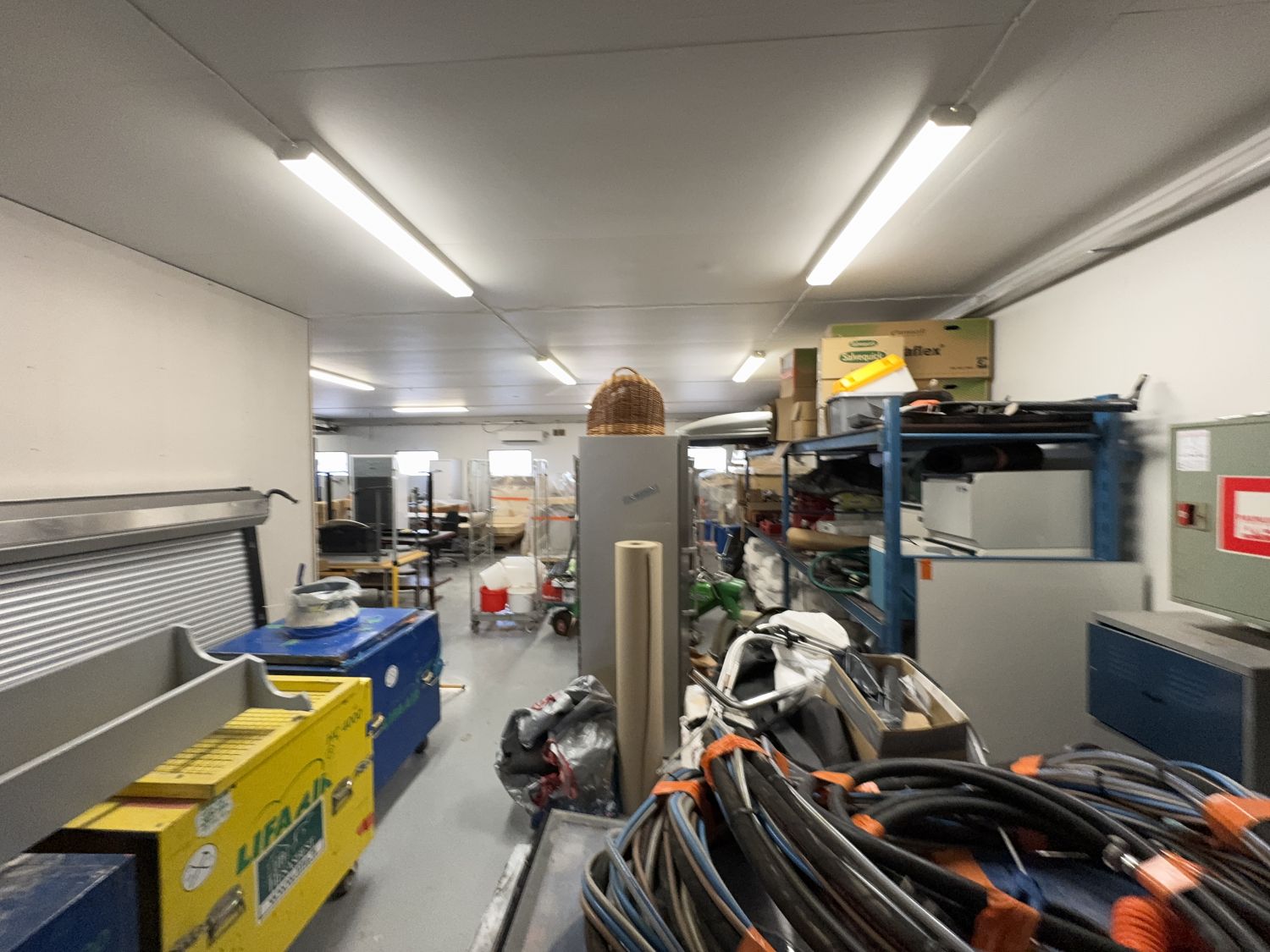 Sisään jaettava halli. Hallin korkeus noin 3 m. Nosto-oven korkeus n. 2,7 m. Ilmalämpöpumppu- ja sähkölämmitys.