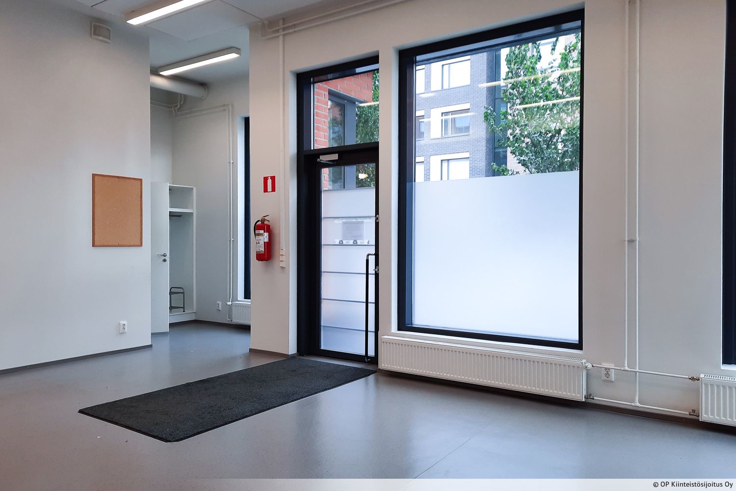Modernin asuintalon katutasolla sijaitseva avara liiketila, huonekorkeus on yli 3 metriä. Huoneistossa on siisti minikeittiö- ja tilava wc. Tiloissa on huomioitu esteettömyys. Tämä toimitila soveltuu hyvin esim. paikallisten palveluiden tuottamiseen. Hyvä sijainti Arabiarannan asuinalueen eteläosassa, lähellä Kauppakeskus Arabiaa.