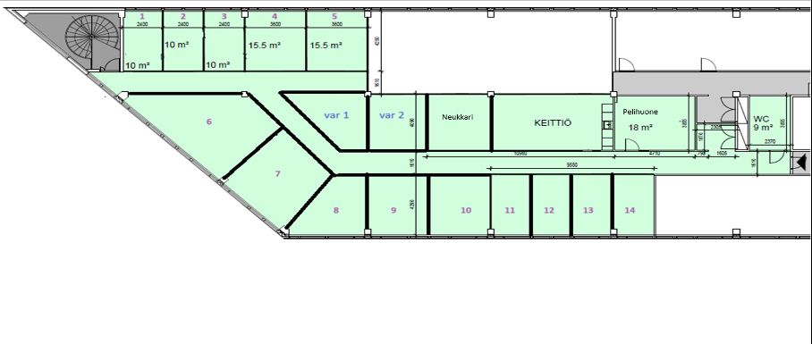 Kiinteistön 2. kerroksessa on pientoimistoalue, josta on mahdollista vuokrata 10 m² - 16 m² kokoisia toimistohuoneita. Toimistohotellin vuokra sisältää aulapalvelun, nettiyhteyden, sähkön ja siivouksen. Toimistohotellin neuvotteluhuoneet ovat myös vuokralaisen vapaassa käytössä.
