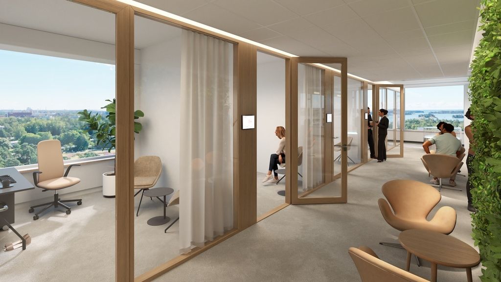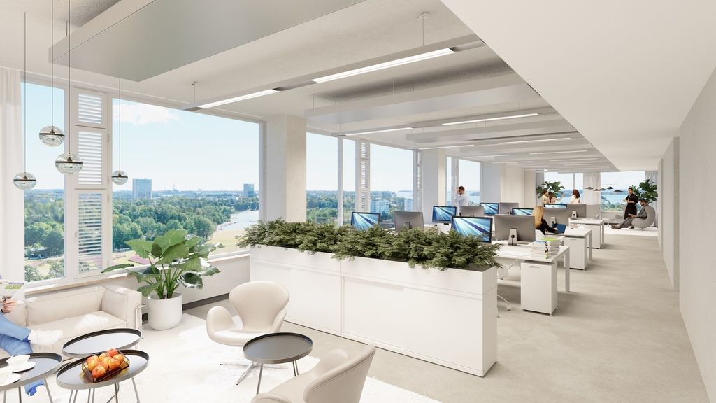 Modernia toimisto- ja liiketilaa uudistuvassa Tapiolan keskustornissa.
