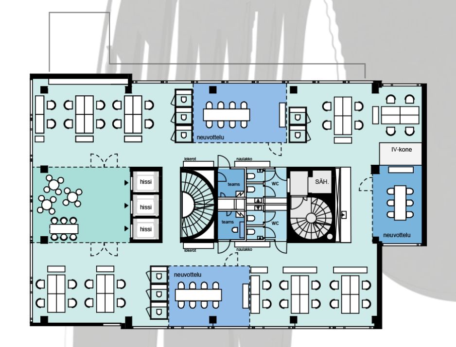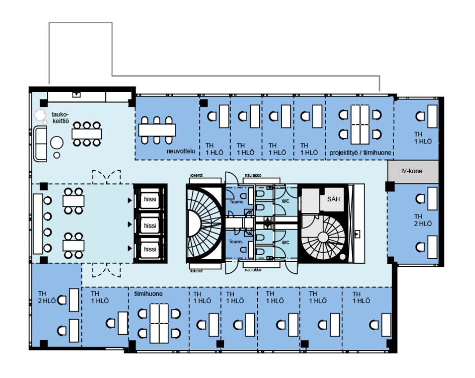 uokrattavaa toimistotilaa on vielä vapaana yhteensä 3737 m², joka jakautuu kerroksiin 3-11. Ensimmäisessä kerroksessa sijaitsevat aulatilat sekä avarat liiketilat, joiden ikkunat avautuvat neljään suuntaan. Kerrokset 2.-11. ovat toimistotilaa, yhden kerroksen ala on n. 415 m². Kerroksia voidaan yhdistää kahden tai useamman kerroksen tilakokonaisuuksiksi, tai tarvittaessa jakaa kahteen osaan n. 200 m² tiloiksi. Neljään suuntaan avautuvat tehokkaat kerrokset ja suuret ikkunat takaavat valoisat tilat ja avoimet näköalat aina merelle saakka. Tehokkaat ja joustavat kerrospohjat taipuvat monenlaisiin tilaratkaisuihin, ja ovat muokattavissa vuokralaisen tarpeiden mukaan. Tiloja on mahdollista jakaa joustavasti eri käyttötarkoituksiin, jolloin ne tukevat saumattomasti modernin työn tekemisen tapoja ja hybridityöskentelyä. Kuvat ovat havainnekuvia kiinteistön tiloista. Pohjakuvissa esimerkkejä mahdollisista tilasovituksista.