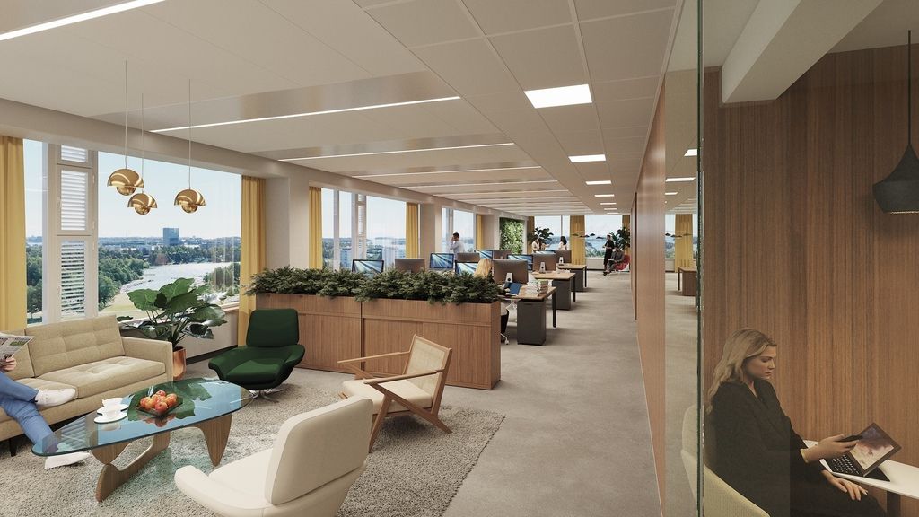Modernia toimisto- ja liiketilaa uudistuvassa Tapiolan keskustornissa.