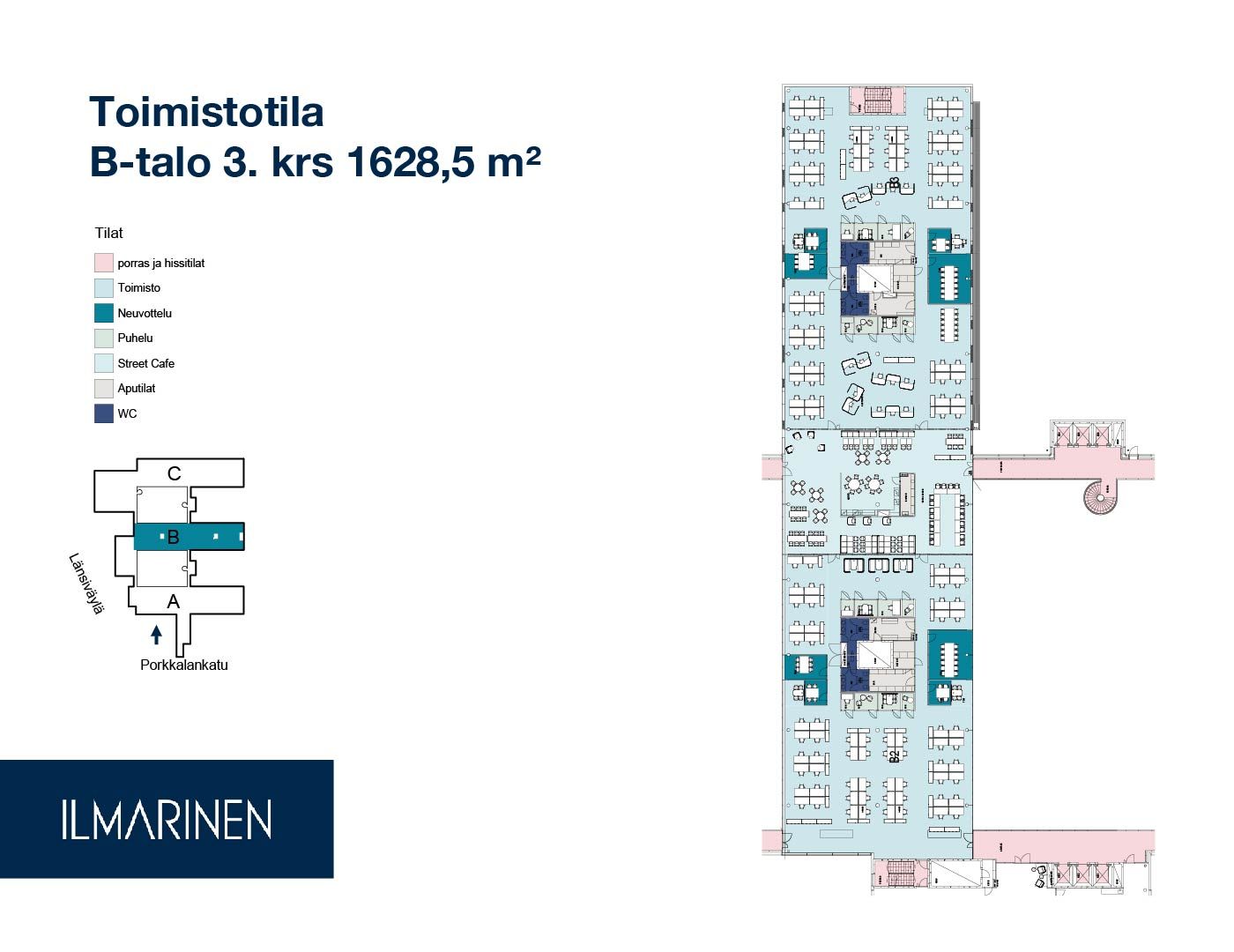 Toimisto 788 - 1628 m² - Kolmannen kerroksen monitilatoimisto, joka on muokattavissa halutulla tavalla. Harvinainen tilaisuus - toimitilaa halutulta paikalta noin 150 hengelle. Kattavat palvelut ja hyvät yhteydet.
