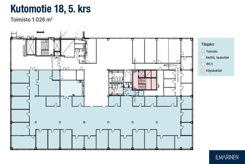 Vuokrataan avara avotilasta ja huoneista koostuva 5. kerroksen toimistotila – maisemakonttori, josta upeat näkymät Talin golf-puistoon. Kutomo Business Parkissa on runsaat valikoimat palveluita: neuvottelutilakeskus ja hyvä ravintola (Factory). Vuokraan kuuluvat myös upea kuntosali sekä aulapalvelu. Kohde sijaitsee erinomaisella paikalla Pitäjänmäellä.