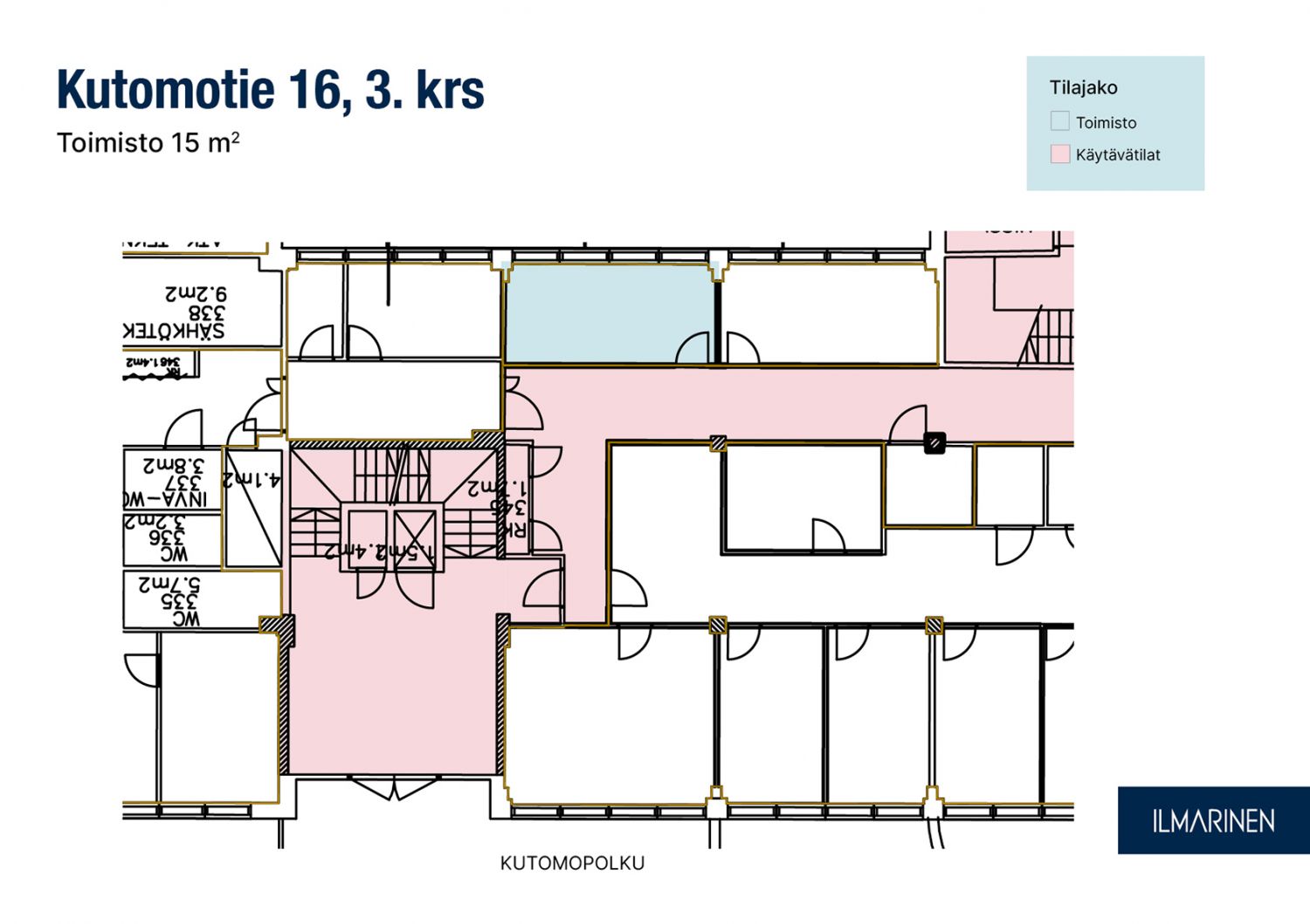 Vuokrattavana toimistohuone 15 m², mahdollisuus vuokrata kaksi vierekkäistä yhteensä 30 m². Kutomo Business Park tarjoaa monipuoliset palvelut vuokralaisilleen: neuvottelutilakeskus, lounasravintola (Factory), erinomainen kuntosali sekä vuokraan kuuluva aulapalvelu. Kiinteistö sijaitsee keskeisellä paikalla Pitäjänmäellä.