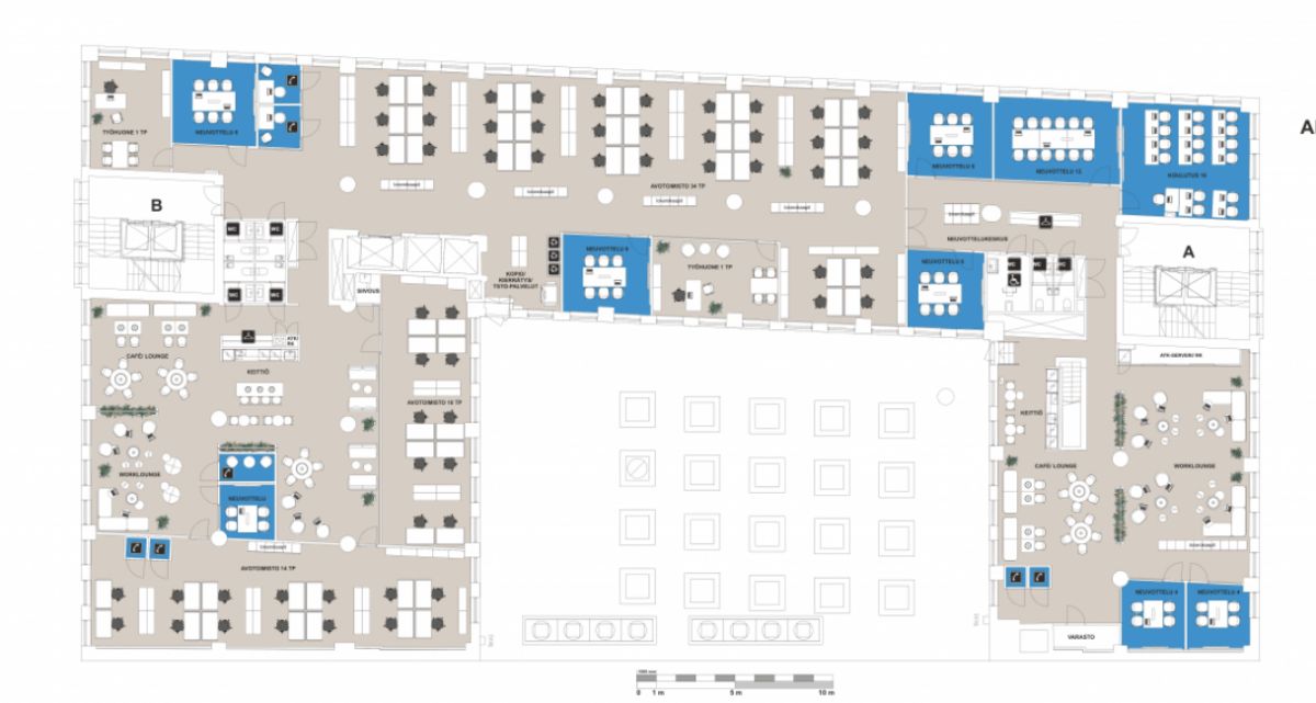 Vuokrataan 4. kerroksen erittäin valoisa, muuttovalmis toimistotila huippusijainnilla Kampin kattavien palveluiden äärellä. Tehokas pohjaratkaisu mahdollistaa joustavat tilaratkaisut vuokralaisen tarpeen mukaan. Kaksi erillistä keittiötä, erikokoiset neuvotteluhuoneet ja monimuotoiset työskentelytilat luovat pohjan toimivaan hybridityöhön. Tilaan tulee myös tavarahissi.