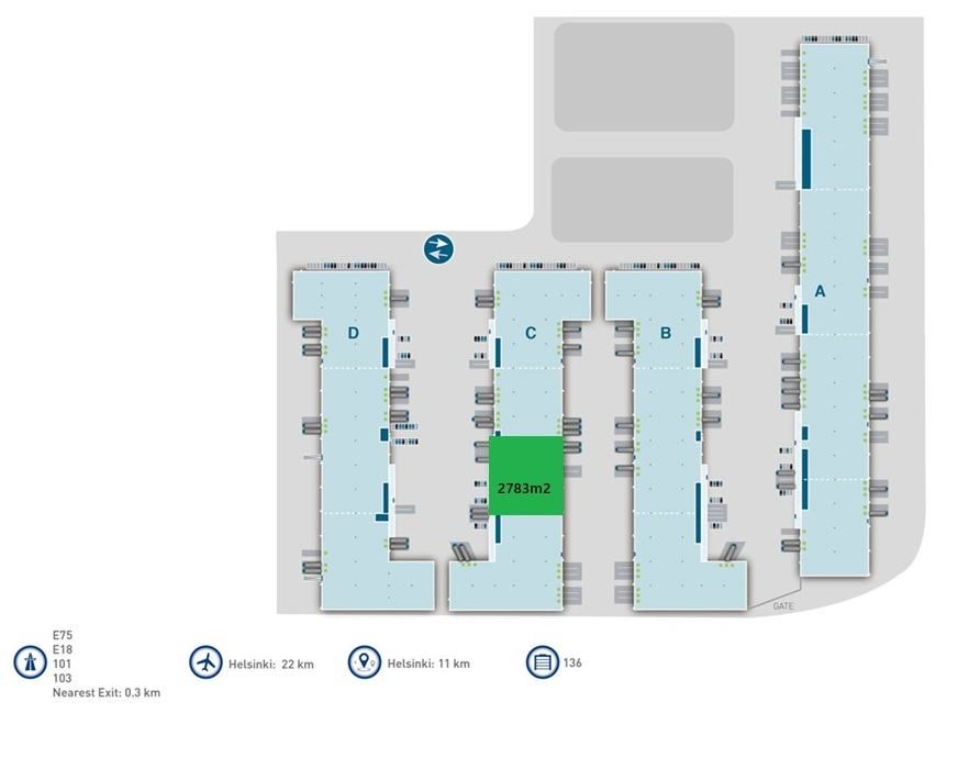 Vuokrattavana 2 783 m² varastotila Vuosaaren sataman Logistiikkakeskuksesta. Varaston vapaa korkeus on hieman yli 6 m ja lattiakantavuus 4 000 kg/m2. Varastossa on yhdeksän lastaustaskua sekä lastauslaituri ja ramppi isoilla ovilla. Tilassa on myös pieni toimisto, sosiaalitilat, keittiö ja taukotila. Isot piha- alueet. Huom. sisäkuvat eivät välttämättä ole juuri tästä tilasta.