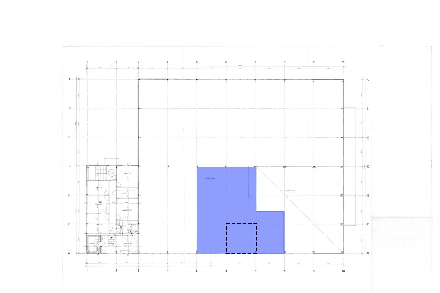 Helsingin Heikinlaaksossa on vuokrattavana hyväkuntoista hallitilaa. Tila soveltuu erilaiseen yrittämiseen, tuotantoon ja varastointiin. Vuokrattavana oleva alue on merkitty rakennuksen pohjakuvaan sinisellä.