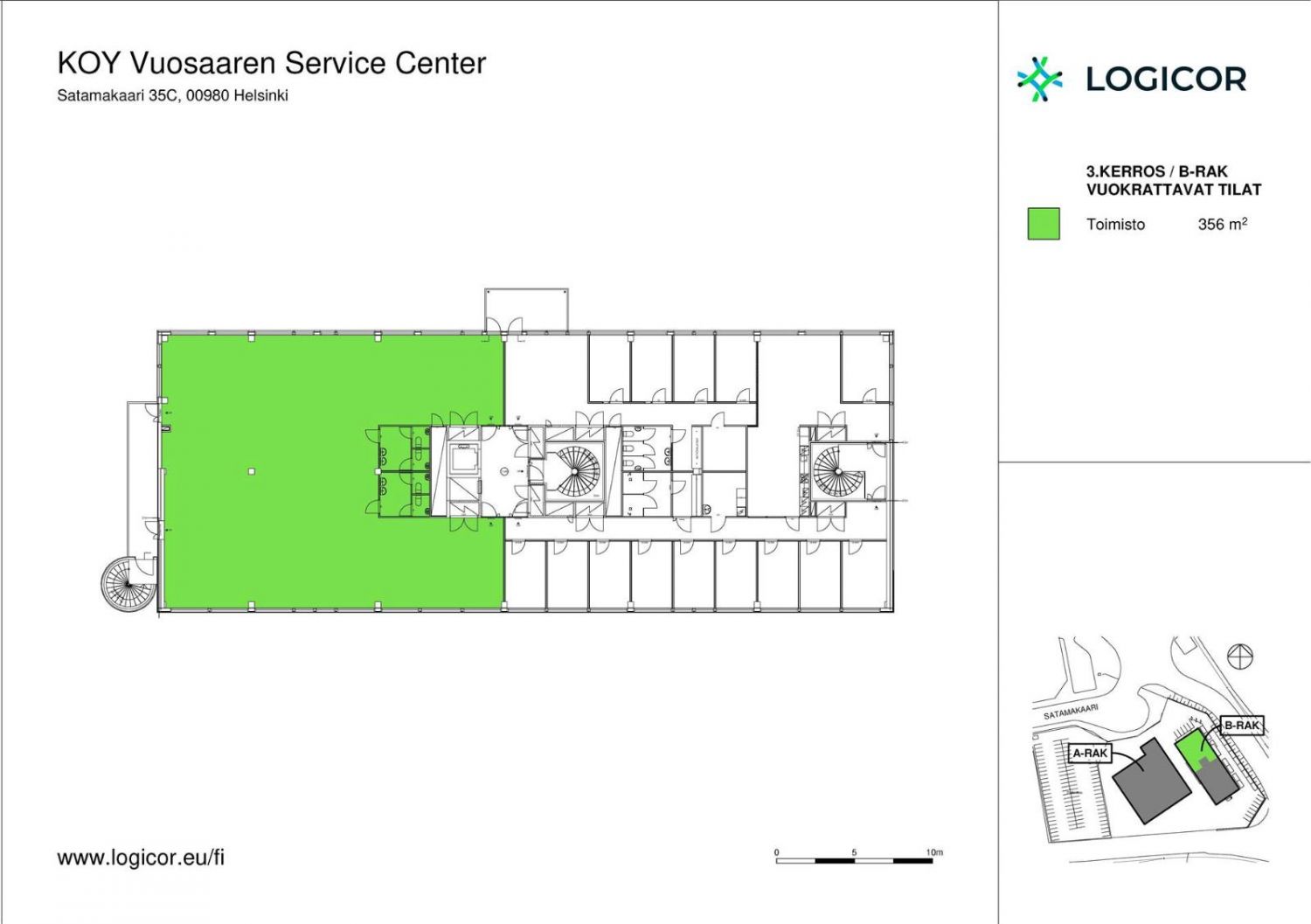 Vuosaaren Service Center -rakennus sijaitsee Vuosaaren satamassa aivan satamakeskuksen ytimessä. Satamasta on hyvät yhteydet ympäri Suomen. Alueelta on moottoritietasoinen väylä Kehä III:lle ja samalla Suomen päätieverkostoon. Logistiikkakeskuksen terminaaleilta ja laitureilta on raideyhteys satamaradan välityksellä Keravan kautta päärataan. Logistiikkakeskuksen etäisyydet ovat Turunväylälle (E18) 30 minuuttia, Hämeenlinnan väylälle (E12) 20 minuuttia, Helsinki-Vantaan lentoasemalle 20 minuuttia ja Lahdenväylälle (E75) 10 minuuttia. Satamaterminaalista kulkee jatkuva suora bussilinja Vuosaaren metro- ja bussiterminaaliin (10 min).