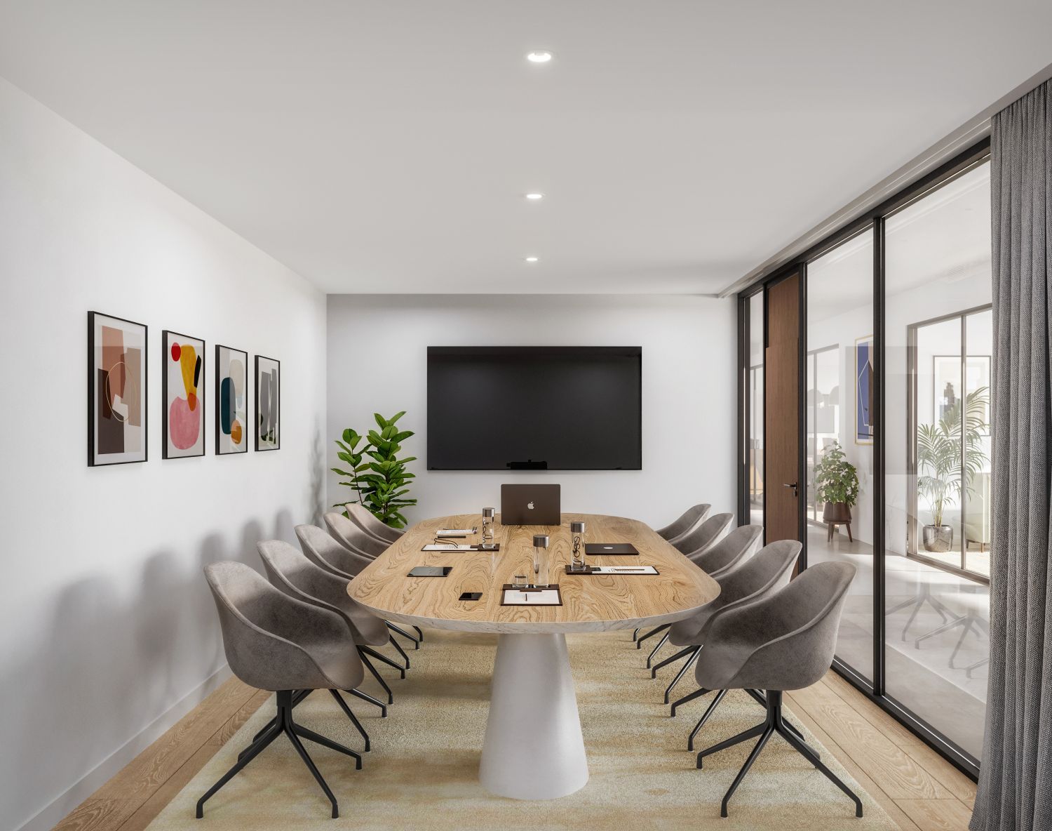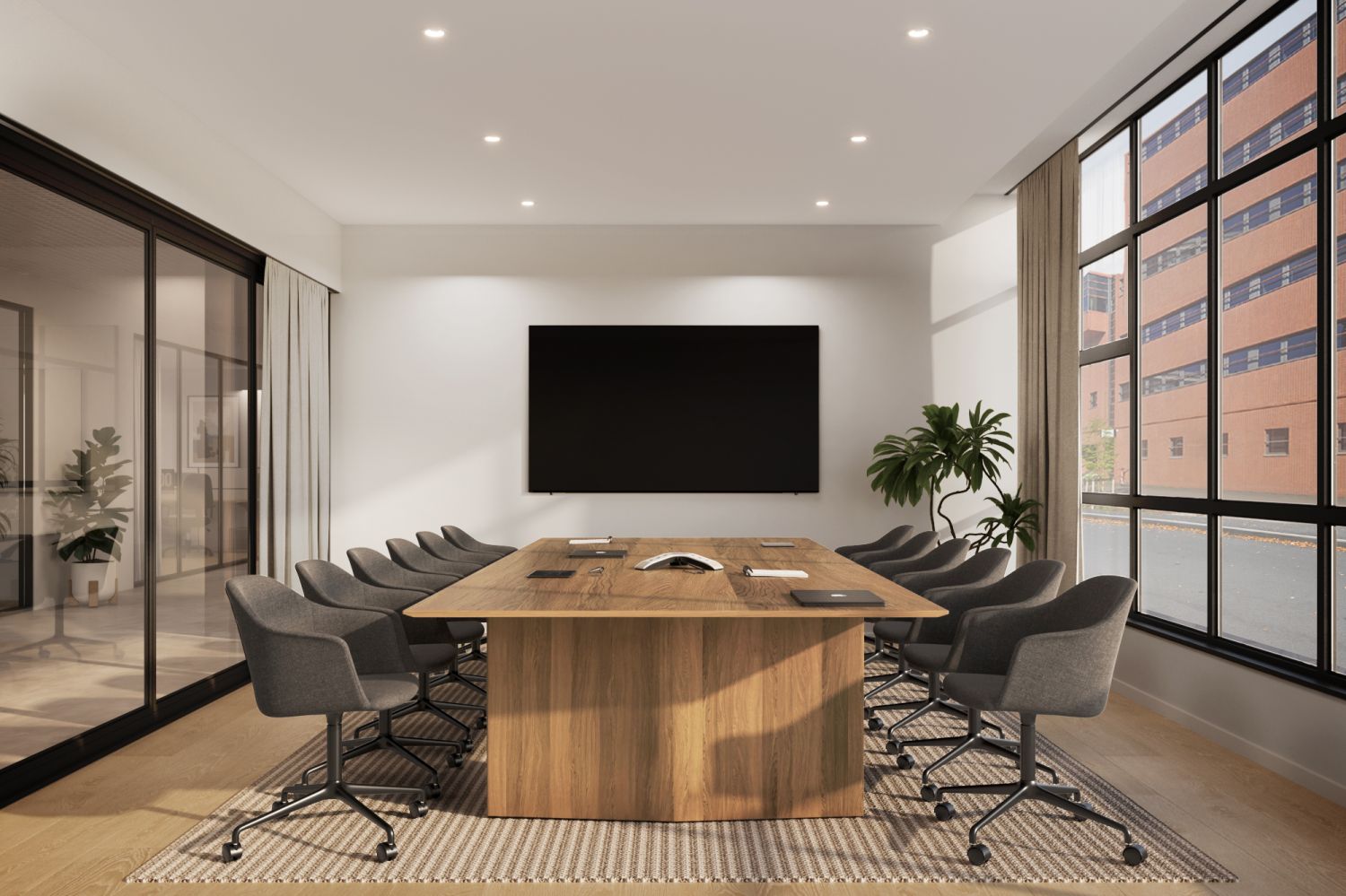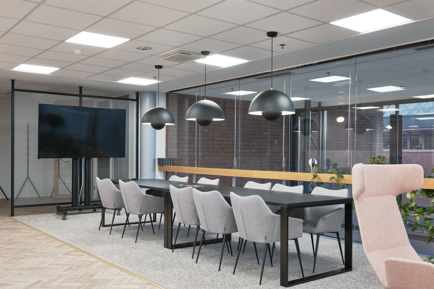 Valoisaa ja avaraa toimistotilaa keskeisellä paikalla. Tila on pääosin avotoimistoa, jonka mukavuutta lisää huoneilmanjäähdytys.