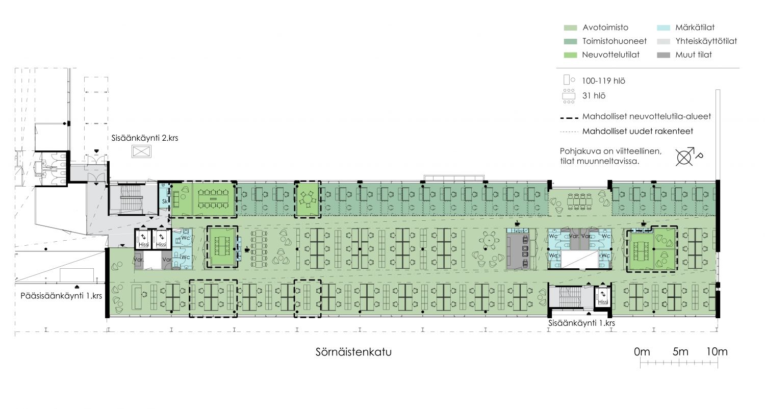Täyden palvelun toimitilaa Sörnäisten ytimessä.