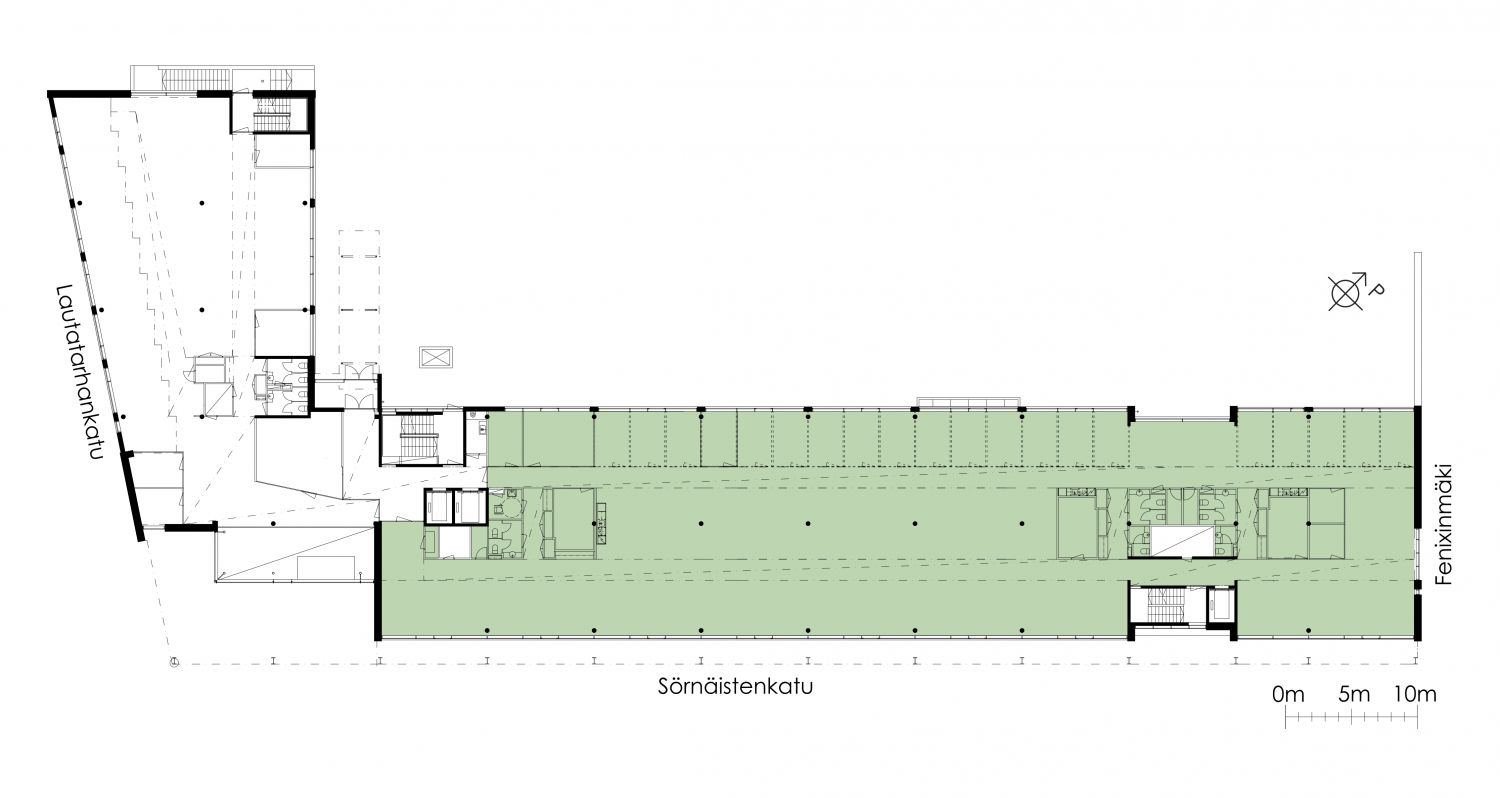 Monipuolinen ja ympäristöystävällinen toimitalo Sörnäisten ytimessä tarjoaa viihtyisän työympäristön, jossa palvelut tukevat arjen sujuvuutta. Talosta löytyy aulapalvelu, kuntosali sekä juuri uudistetut neuvottelutilat. Lisäksi kiinteistössä toimii oma leipomo-lounaskahvila. Ylimmässä kerroksessa sijaitsevat saunatilat ja kattoterassi, jotka tuovat lisämukavuutta työpäiviin. Kiinteistön omasta parkkihallista pääsee suoraan toimistokerroksiin, mikä helpottaa liikkumista.