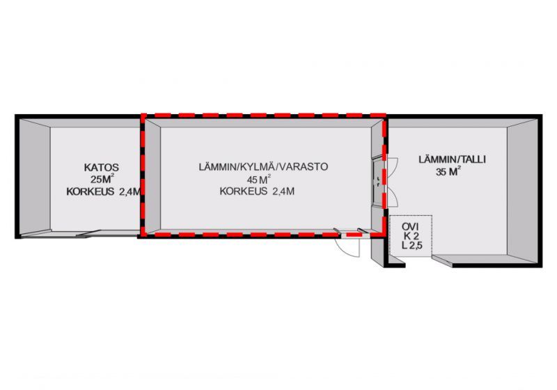 Tarmolan vilkkaalla teollisuusalueella teollisuushallin yhteydessä on vuokrattavissa hyvä noin 45 m² varastotila. Tila soveltuu monenlaiseen varastointiin, harrastamiseen sekä pienimuotoiseen työskentelyyn. Vuokrattava tila on merkitty pohjakuvaan ja julkisivukuvaan.