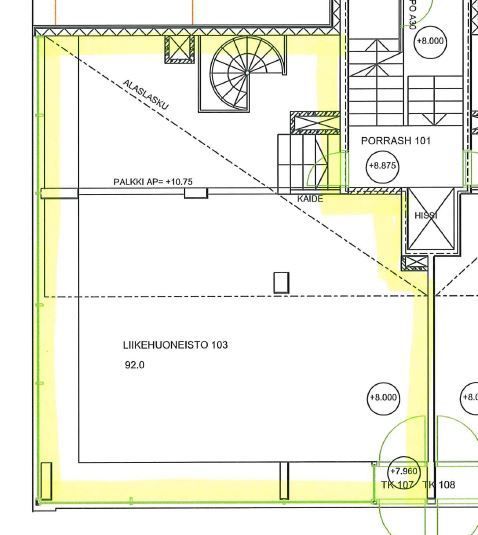 Kyseinen tila on kooltaan 92 m². Liiketila sijaitsee kiinteistön kulmassa ja siinä on paljon näyteikkunoita. Tilaan sisältyy myös alakerrassa sijaitseva 19,5 m² kokoinen varastotila. Liiketila ei sovellu ravintola-, kahvila- tai parturikampaamotoimintaan. This premise is not suitable for a restaurant, cafeteria or a barber shop.