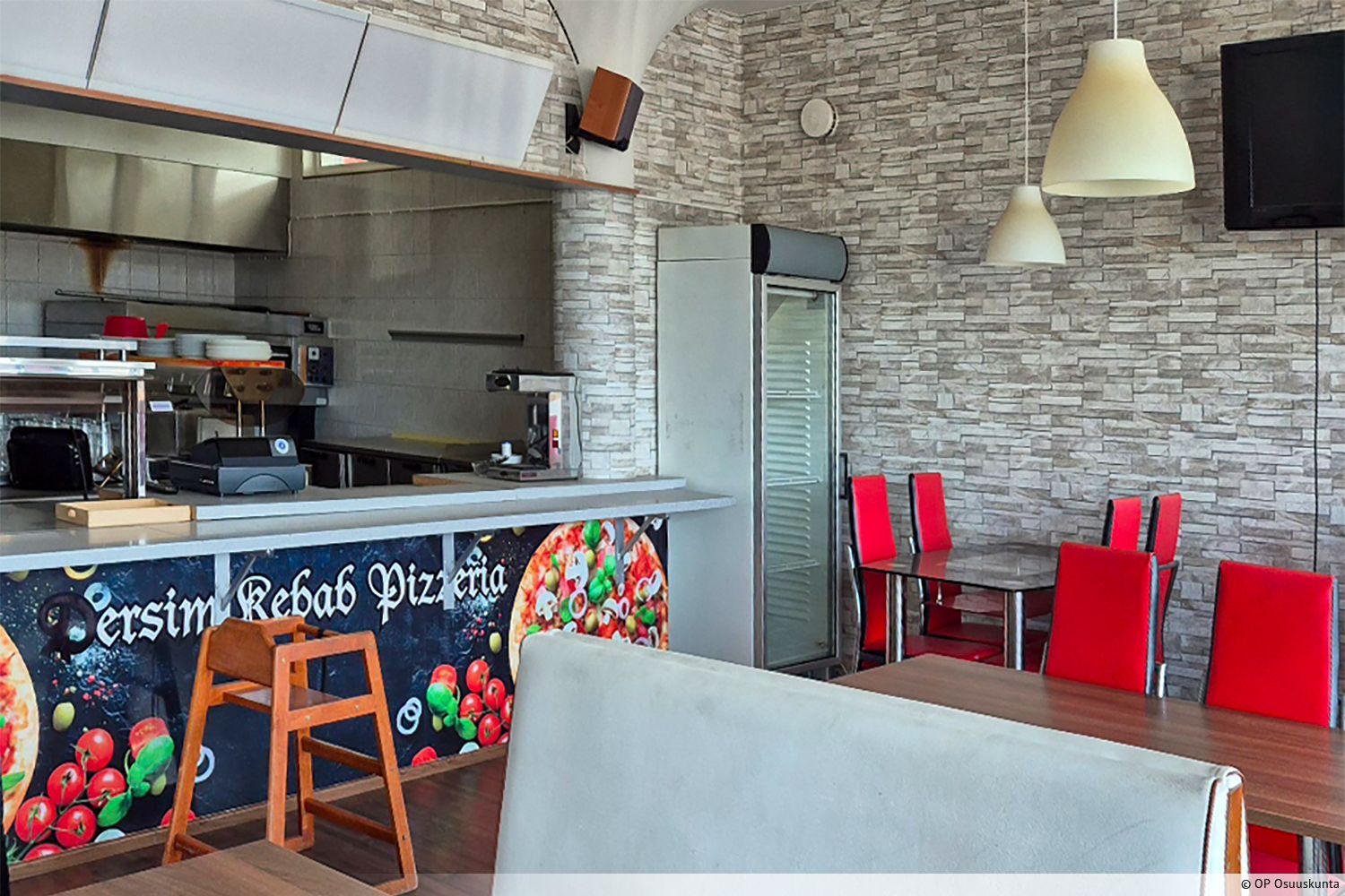 Tila on toiminut aiemmin pizzeria-käytössä, ja se on jo valmiiksi varusteltu pizzeria-toimintaan. Liiketilan edustalla on viihtyisä terassi. Asiakaspaikkoja on toimitilassa noin 30.