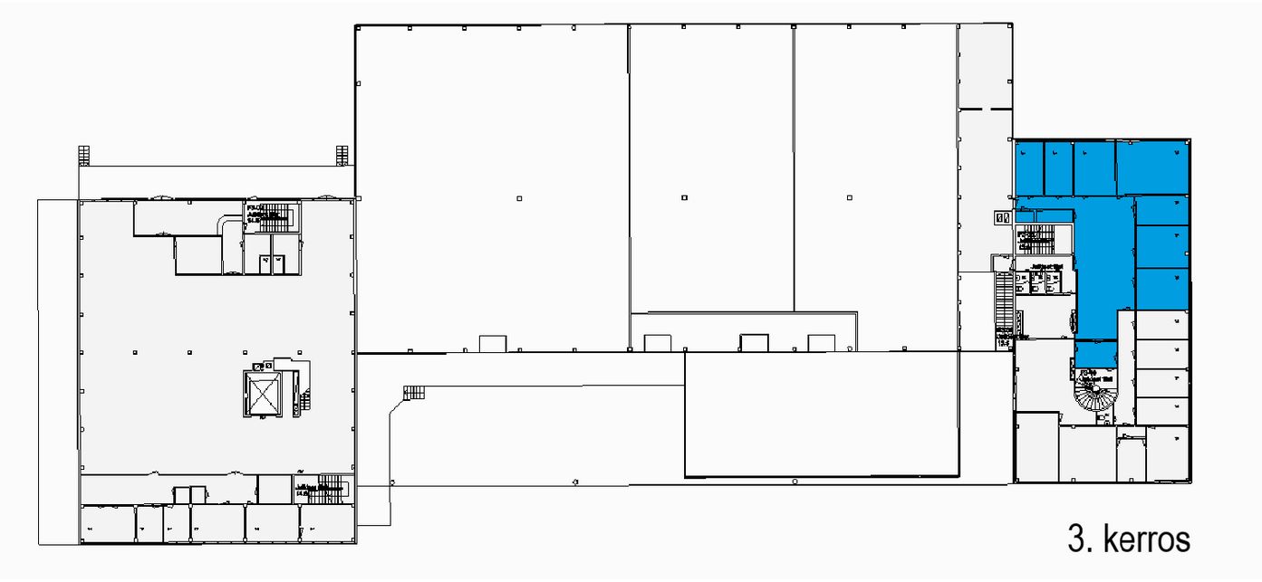 Vuokrattavissa remontoitu ja siisti kolmannen kerroksen toimistotila. Yhteiskäytössä olevat tilat (vessat, aula) jyvitetään pinta-alojen suhteessa vuokra-alueeseen, ala 5 m2.