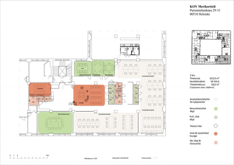 Siisti kolmannen kerroksen 623 m² toimisto erinomaisella sijainnilla Punavuoressa, suositussa dynaamisessa ja yhteisöllisessä Merikorttelissa!