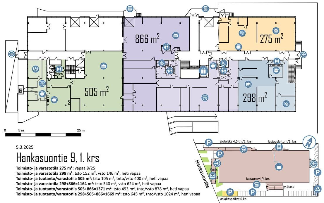 Vuokrataan toimitiloja, jotka koostuvat yhdistelmästä varasto-, toimisto- ja tuotantotiloja 275 - 1 669 m² koossa. Pohjakuvassa esitettynä eri vaihtoehtoja tilojen yhdistelmistä!