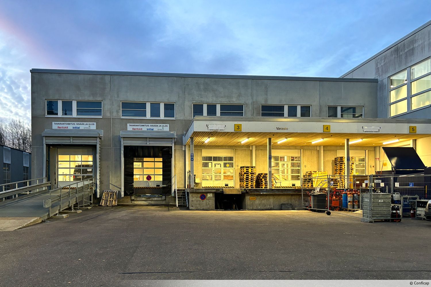 Vuokrataan ensimmäisen kerroksen varastotila, jonka yhteydessä on yhteiskäytössä oleva lastauslaituri. Tilan korkeus on noin 8m. Kiinteistö sijaitsee suurien pääväylien, Kehä I:n, Lahdenväylän ja Porvoon moottoritien välittömässä läheisyydessä.